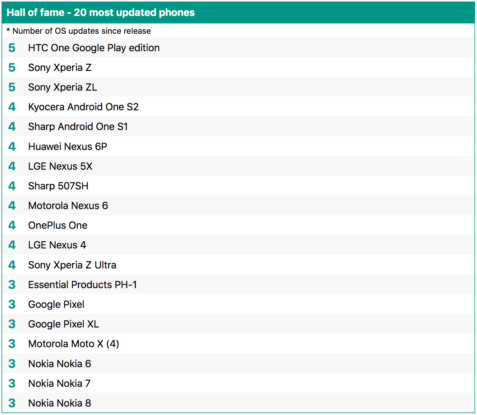 AOSMark har sammanställt en topplista över marknadens bästa mobiler och tillverkare när det gäller Android-uppgraderingar. Föga förvånande ligger Google högst upp på listan över marknadens bästa tillverkare. Sony Xperia Z, Xperia ZL och HTC One Google Play edition toppar dock listan över de mest uppdaterade mobilerna genom tiderna. Den sistnämnda uppdaterades till exempel från Android 4.2 till Android 5.1, vilket faktiskt motsvarar fem API-nivåers skillnad. Bland de bästa tillverkaren ligger OnePlus på andra plats med Nokia och Sony på tredje respektive fjärde plats. Längst ner på listan finns tillverkare så som LG och Asus.