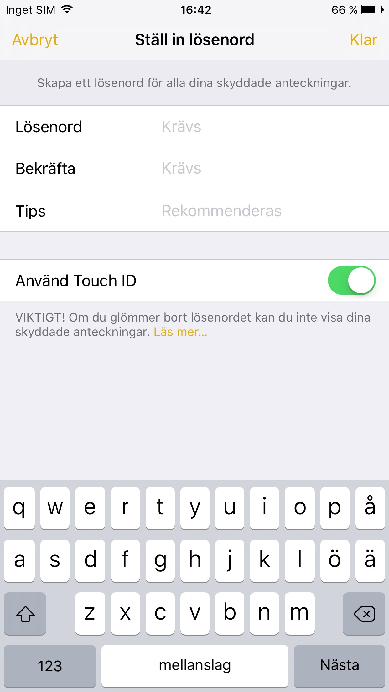 Anteckningar har fått en ny funktion som kan vara viktig för många. Gå in i en anteckning och klicka på knapp längst upp till höger. Klicka sedan på ”Lås anteckning” och du får möjlighet att ställa in ett lösenord för din anteckning. Anteckningen blir låst och helt omöjlig att komma in i om du inte har rätt lösenord för att låsa upp den eller tillgång till ett TouchID-registrerat fingeravtryck.