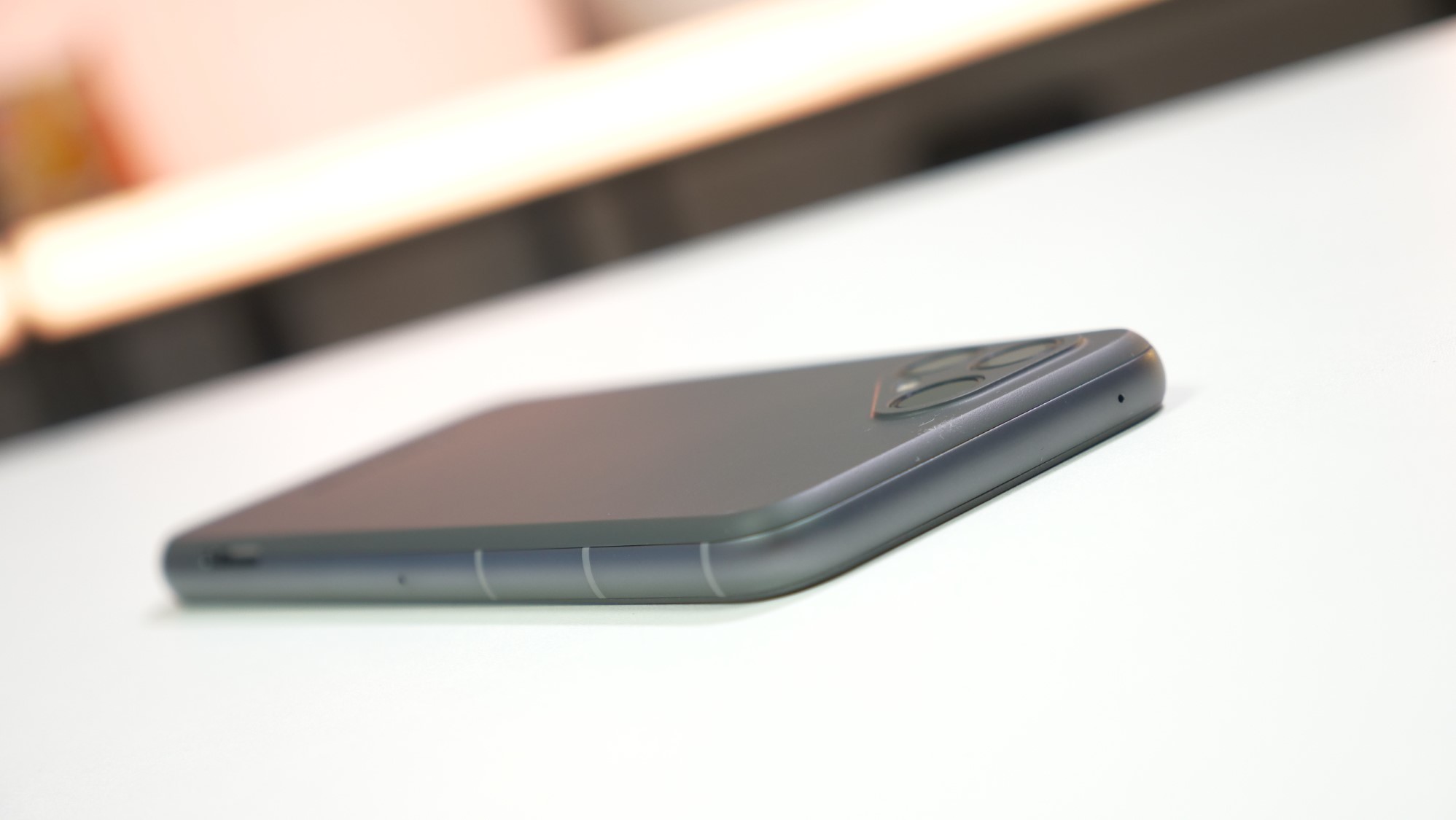 Utsidan är en av de största nyheterna med Fairphone 4. Telefonens chassi är nu gjort av metall, medan tidigare varit helt av plast. Bakstycket är fortfarande gjort av plast med en gummiliknande finish men ramen är gjord av metall. Det ger en stadig känsla av kvalitet i handen. Bakstycket har en öppning längs ena sidan där vi kan stoppa in en nagel för att bända upp hela telefonen.