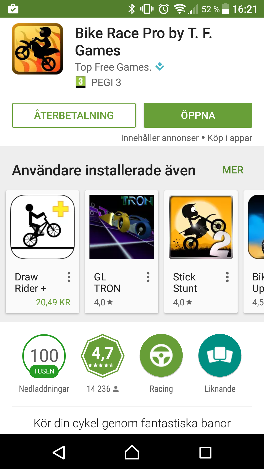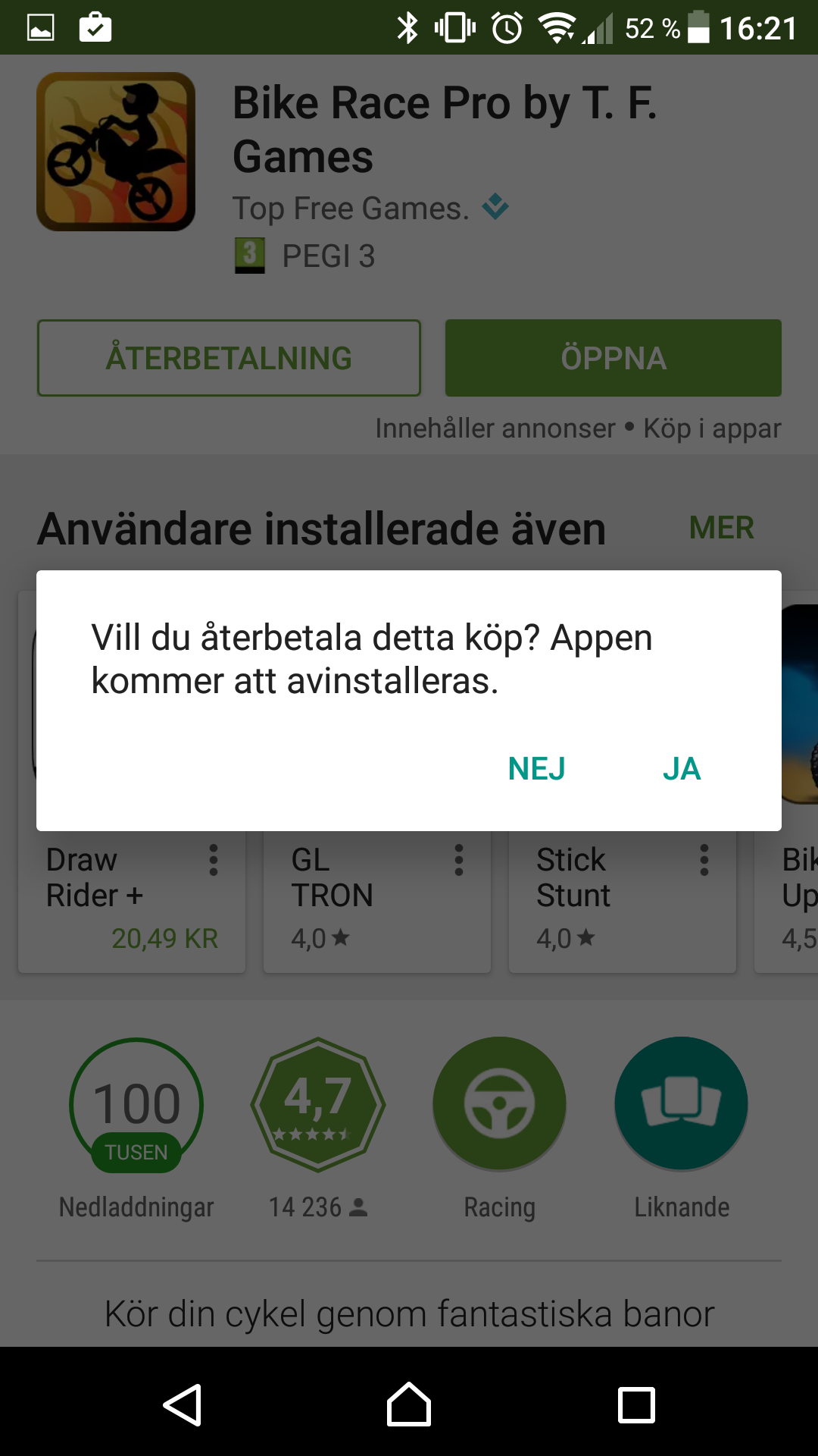 Om du vill göra ett återköp på ett köp som du gjort i en app måste du begära återbetalning i ett speciellt webbformulär. Det kan du göra genom att klicka här.