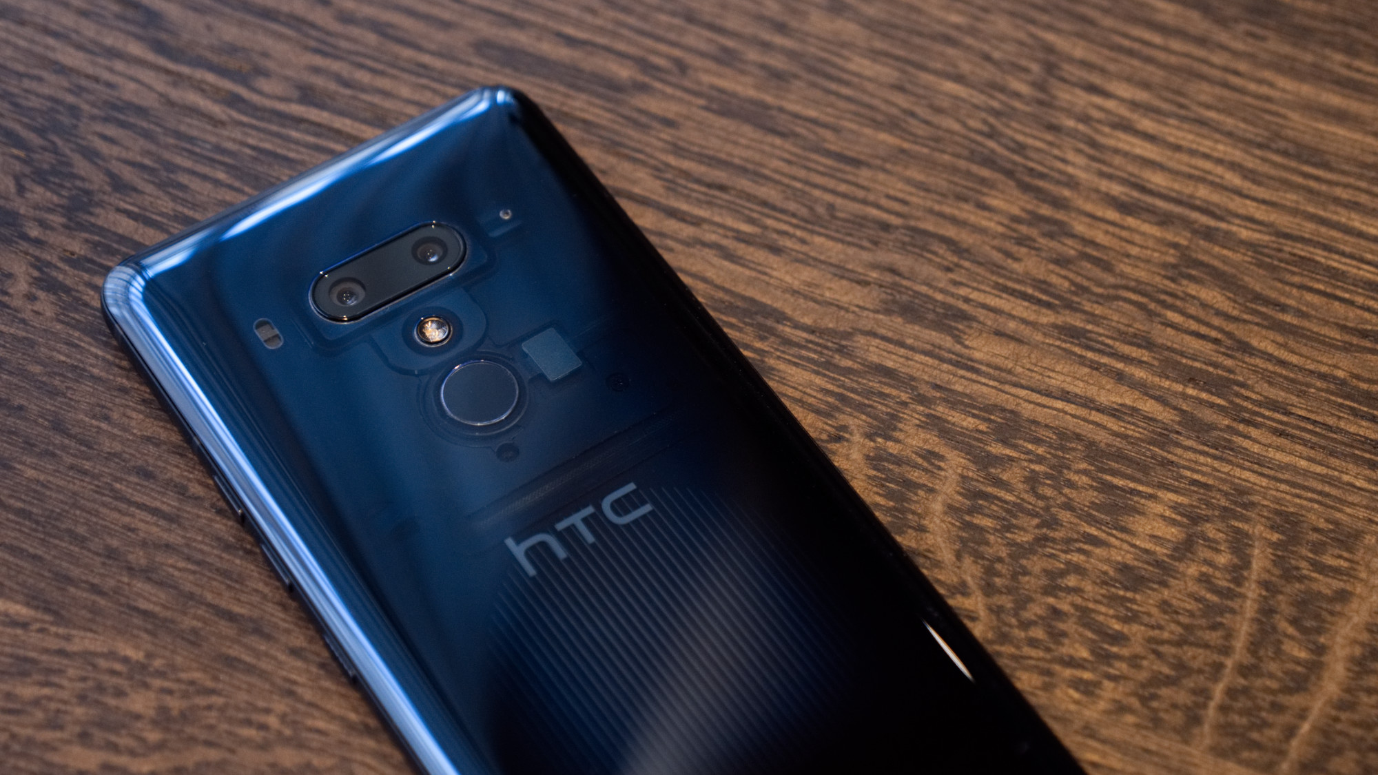 HTC U12+ har en design som påminner mycket om HTC U11 från förra året. Baksidan täcks av en unikt rundad glasskiva. I Sverige kommer glaset ha en svart baksida men HTC har också planer på att lansera två andra färger: en röd och en blå variant. Den blåa varianten är särskilt intressant eftersom den är delvis transparent. Det gör att vi kan se delar av insidan på ett sätt som ger telefonen ett minst sagt unikt utseende.