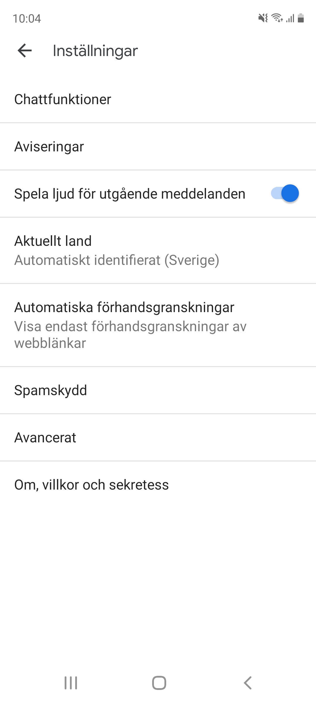 Det första alternativet är det enklaste. Du börjar med att öppna appen Android Messages-appen. Klicka på de tre prickarna uppe till höger. Välj sedan Inställningar. Välj sedan Chattfunktioner. Där kan du stänga av chattfunktionen.