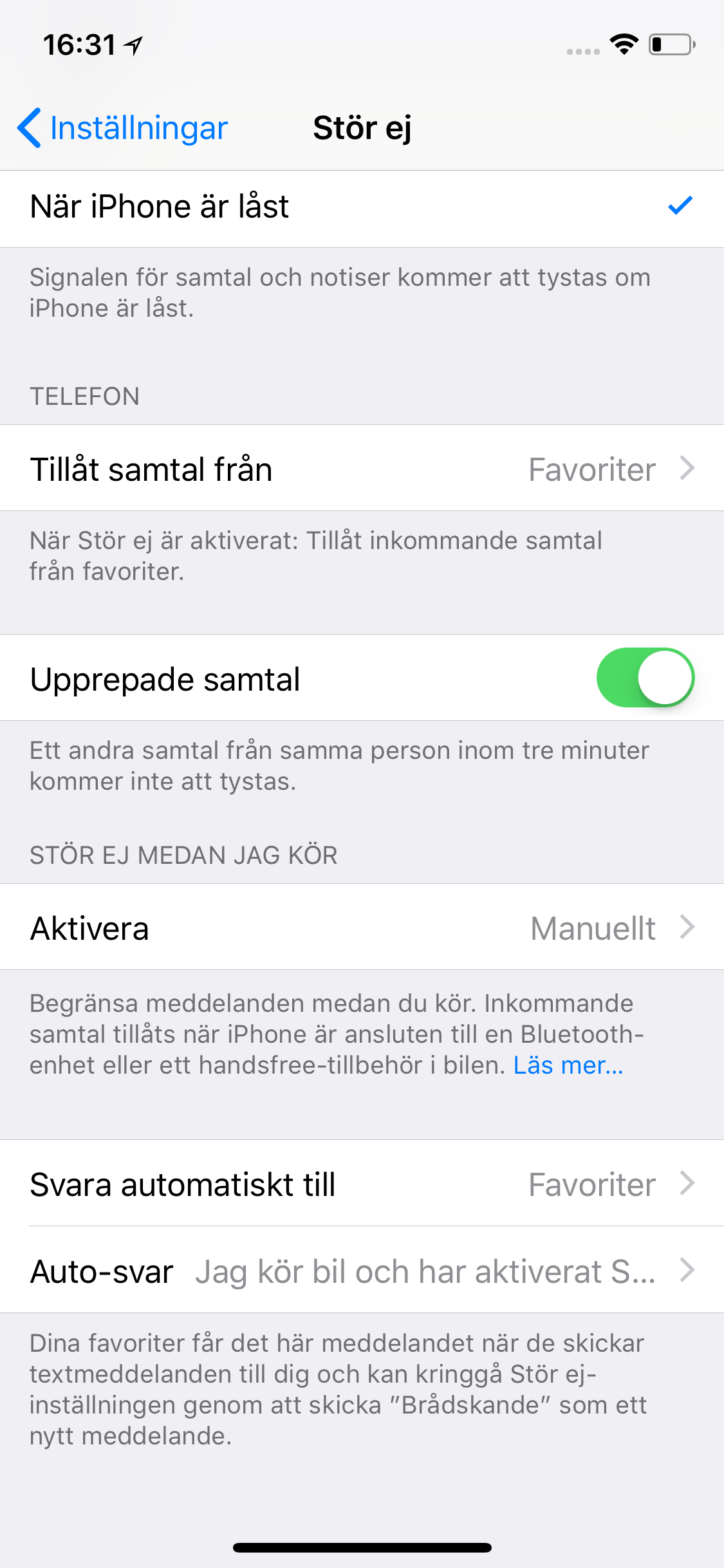 Stör ej är en funktion som har funnits tillgänglig i Apples telefoner i många år. Den låter dig bestämma när eller av vad du vill och inte vill bli störd. Du kan till exempel bestämma att vissa kontakter får ringa och störa dig men att alla andra inte får ta sig igenom. Sedan lanseringen av iOS 11 i höstas finns en ny inställning för Stör ej-läget som gör att det kan aktiveras automatiskt så fort du sätter dig i bilen.