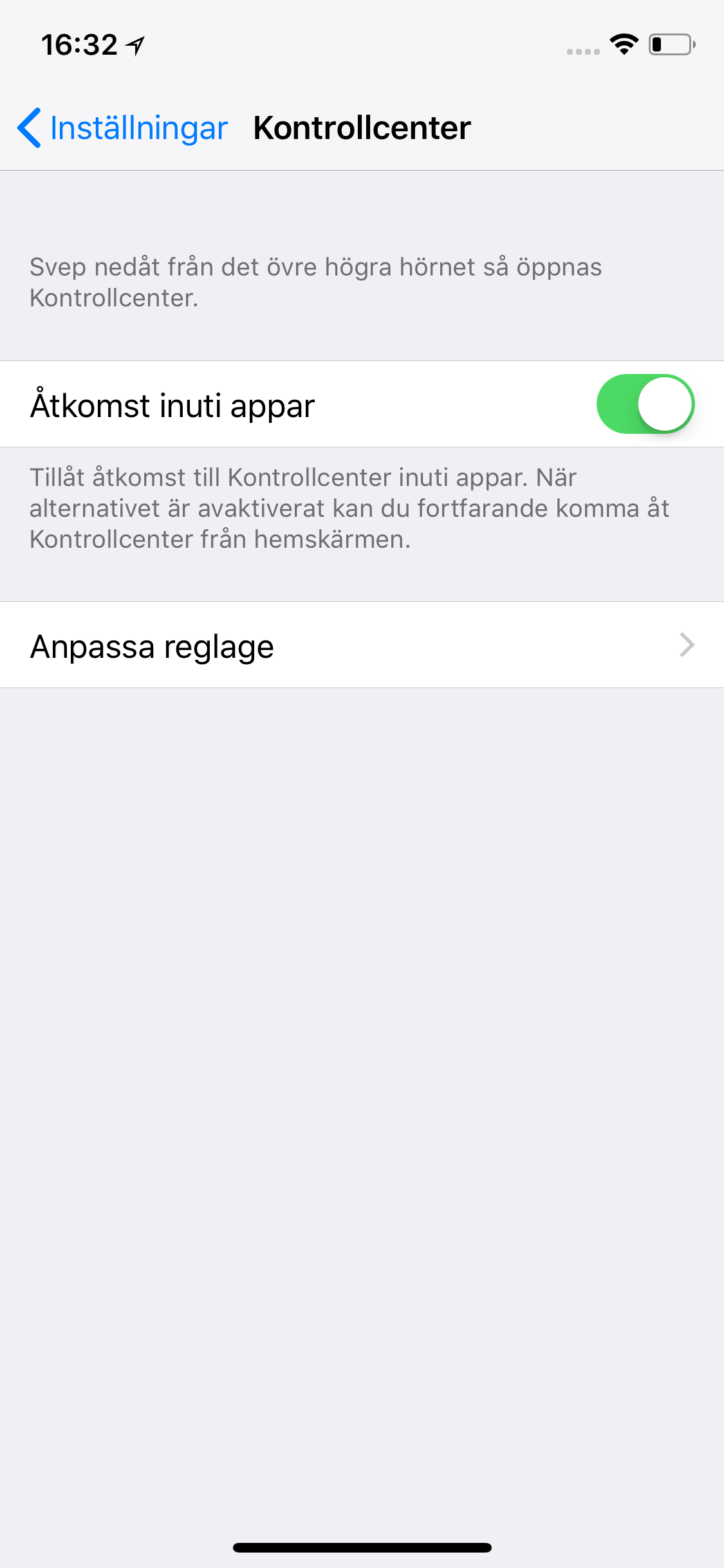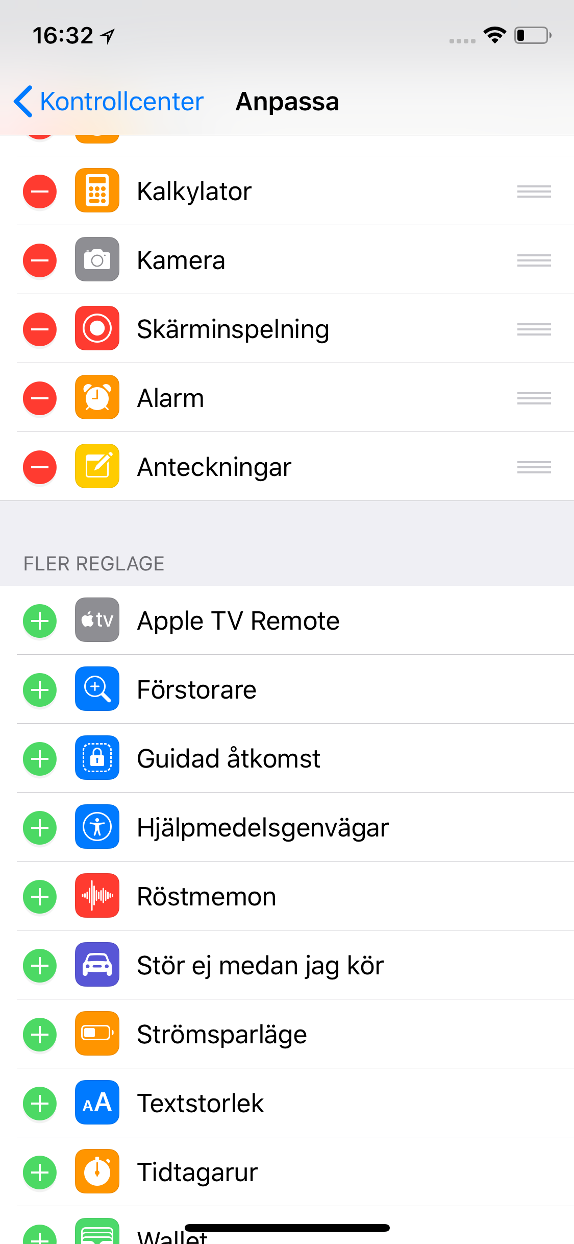”Stör ej medan jag kör” är namnet på den ganska nya funktionen. Den erbjuder tre alternativ: manuellt, automatiskt och ”Via Bluetooth-anslutning i bilen”. Med den sistnämnda inställningen aktiveras Stör ej-läget så fort telefonen ansluts till din bils Bluetooth-enhet. Det förstnämnda läget är helt enkelt manuellt. Du kan aktivera det genom Kontrollcenter. Som standard är den knappen dock gömd så du behöver först aktivera den i inställningarna för Kontrollcenter.