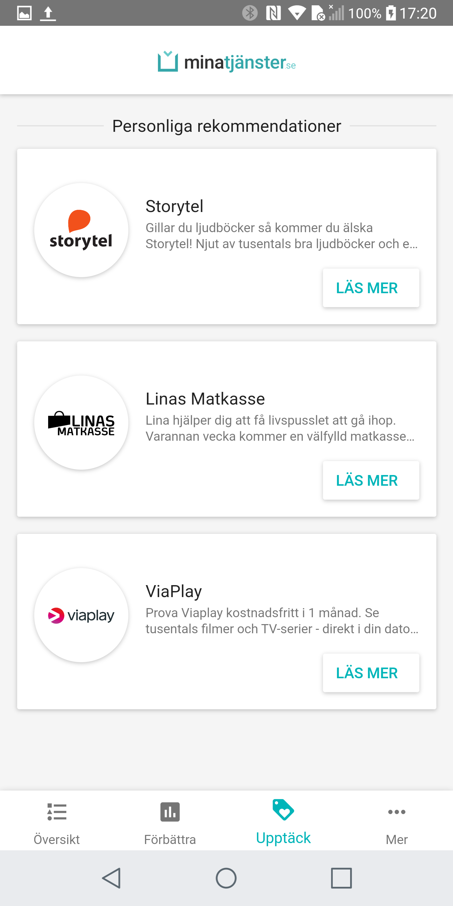 Mina Tjänster är en app som finns tillgänglig för både Android och iOS. För att komma igång med den behöver du logga in med ditt mobila BankID. När du har gjort det kan appen koppla dig till din bank. I nuläget har Mina Tjänster stöd för Swedbank, Nordea, SEB och Handelsbanken. Appen söker därefter igenom de bankkonton du vill administrera och letar efter återkommande betalningar som den känner igen. Betalningarna måste inte nödvändigtvis vara exakt lika stora varje månad eftersom appen använder sig av summan och texten i betalningen för att komma fram till vart betalningen skickades. När appen har hittat återkommande betalningar presenterar den dem som prenumerationer på översiktssidan. Här kan du som användare få en översikt över de abonnemang och prenumerationer som har upptäckts.