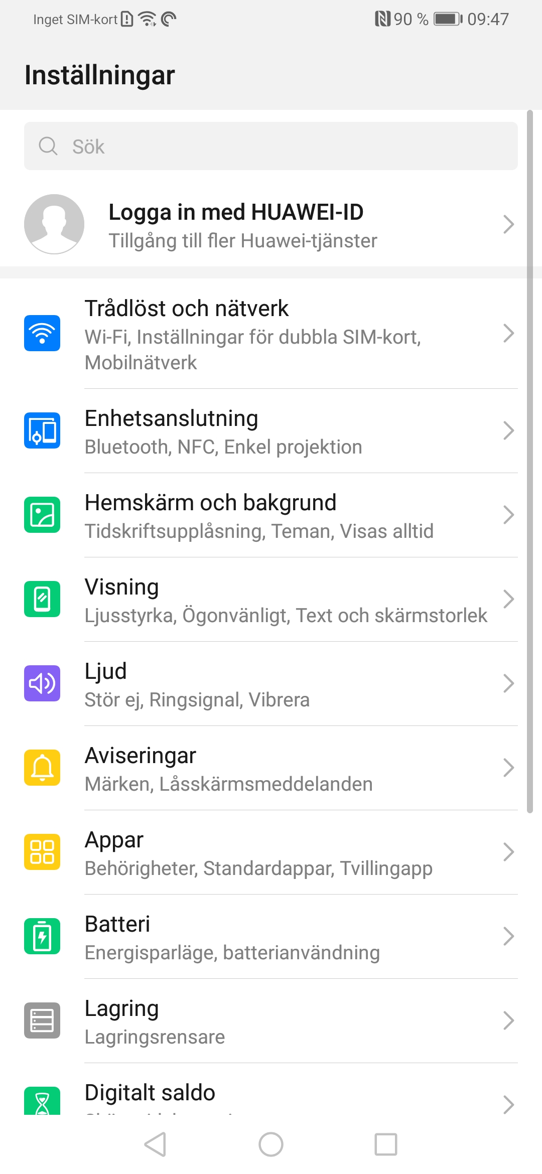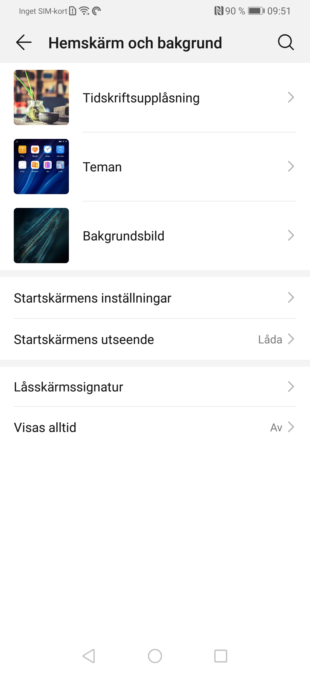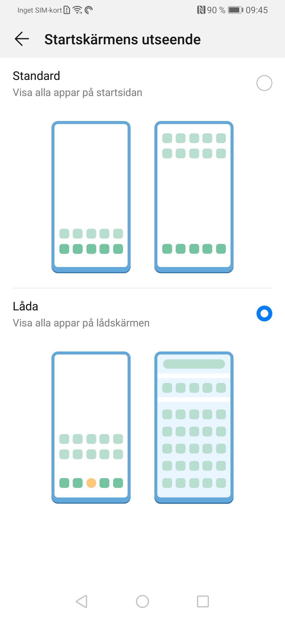 Huawei P30 Pro har en ganska begränsad hemskärm. Den har till exempel ingen appskärm som standard. Den är dock enkel att förändra. För att få tillgång till en mer klassisk hemskärm kan du använda ett inbyggt alternativ i Huaweis mjukvara. Gå till Inställningar —> Visning —> Startskärmens utseende. Där kan du byta till ”Låda”. Nu kan du visa alla installerade appar i bokstavsordning och inte tvingas ha alla appar på hemskärmen.