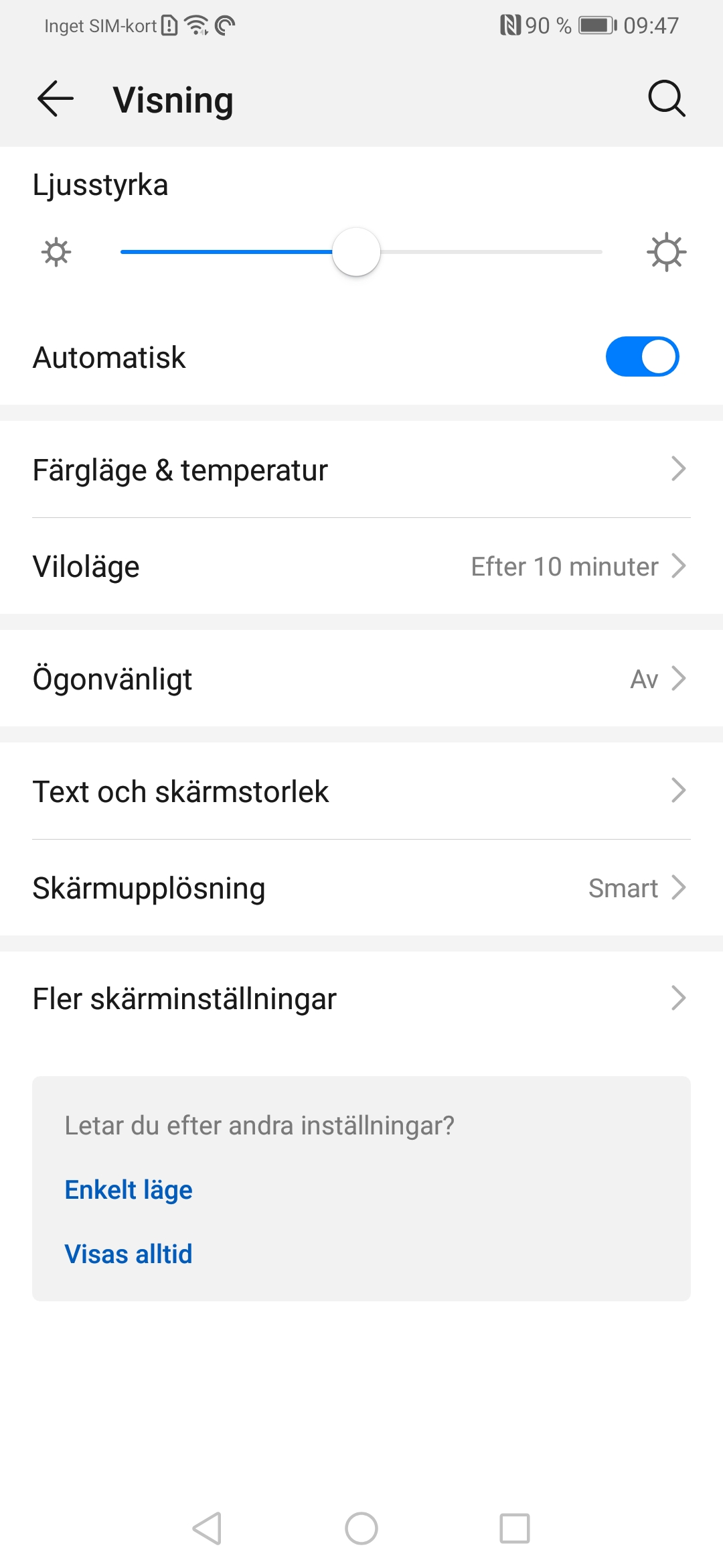 6. Skärmen visas alltid