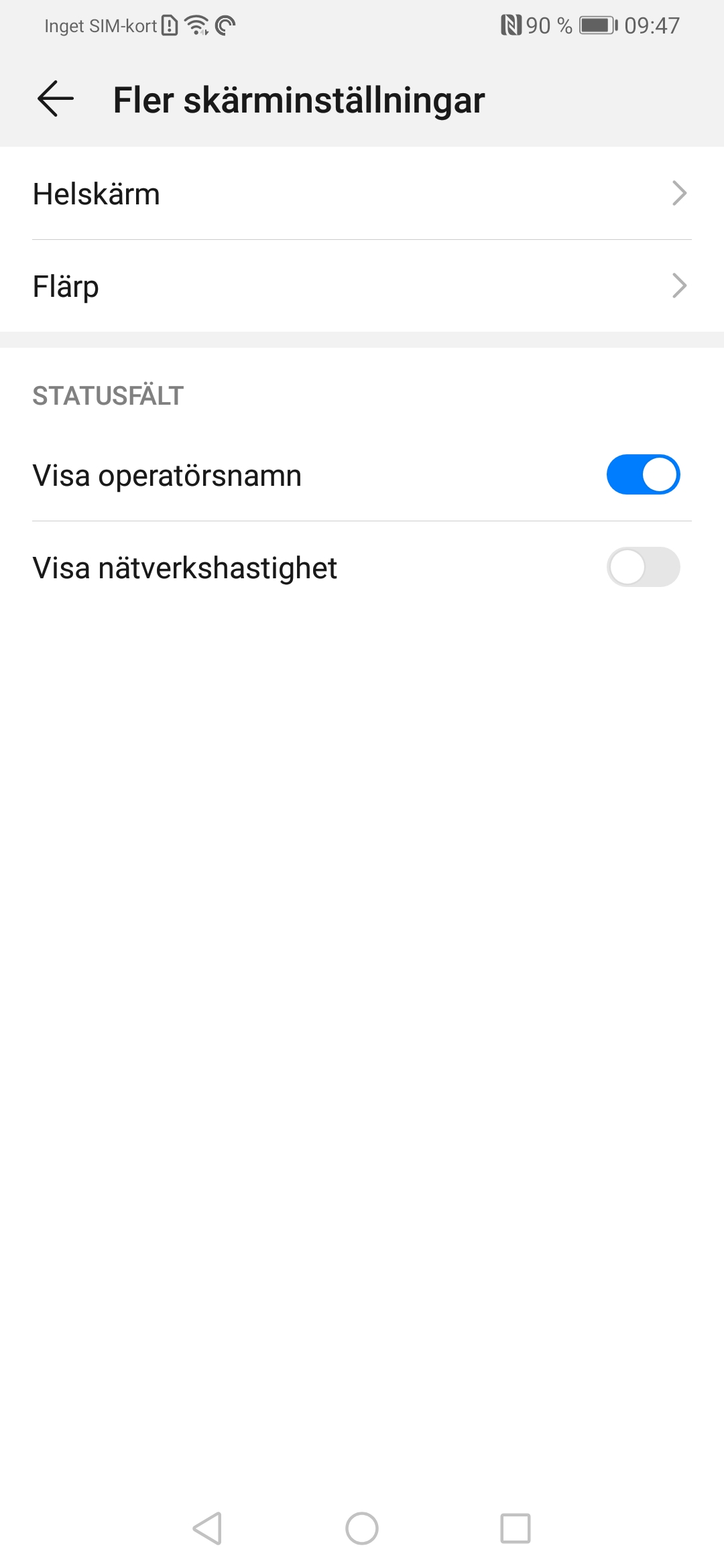 Detta är en inställning som beror på ditt tycke och smak. Om du vill kan du stänga av P30 Pro:s lilla flärp. Bildskärmen till höger och vänster om flärpen blir då svart men du fortsätter se statusikonerna. Videos spelas nu också utan att störas av flärpen. Du hittar inställningen under Inställningar —> Visning —> Fler skärminställningar —> Flärp.