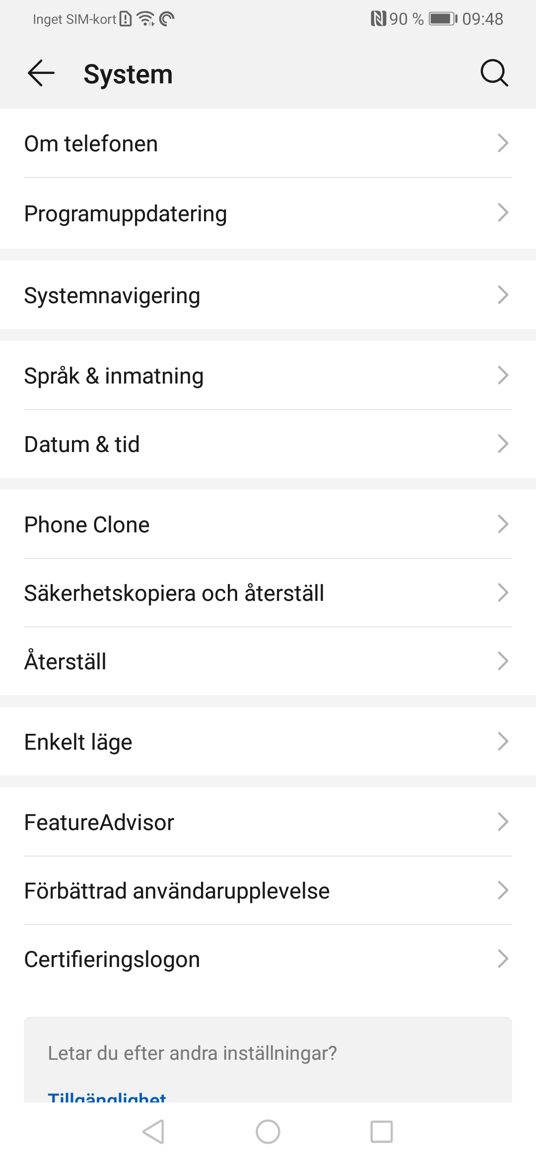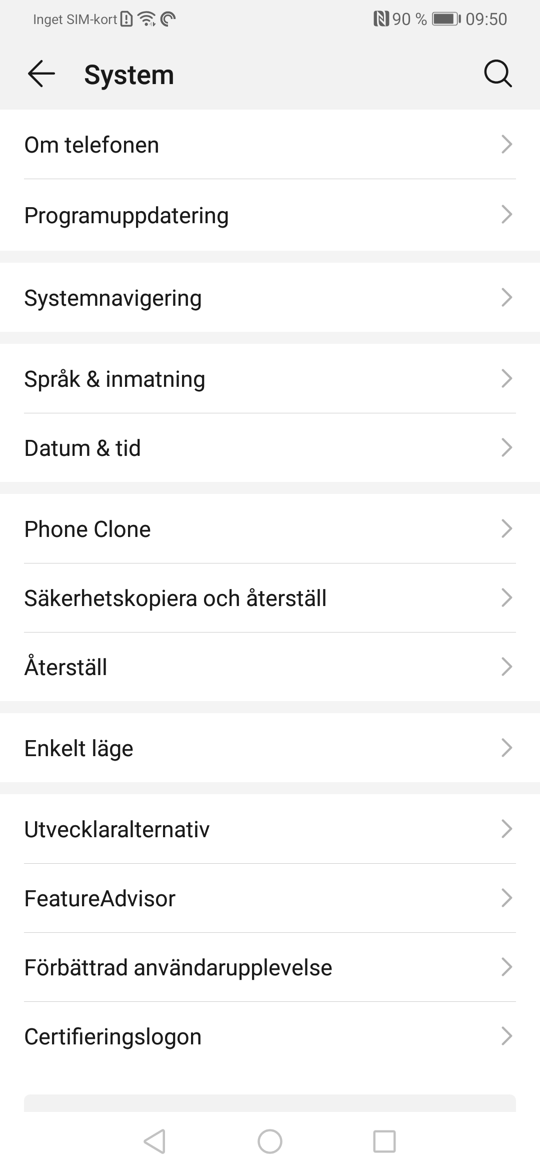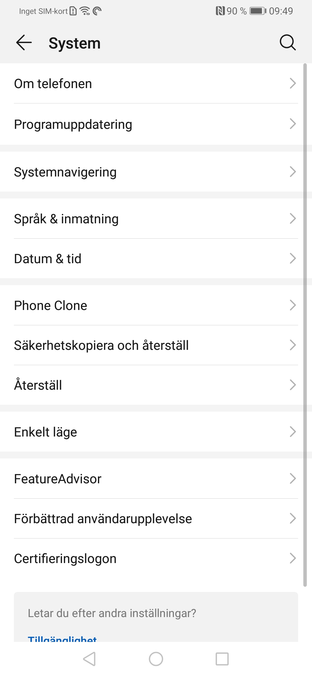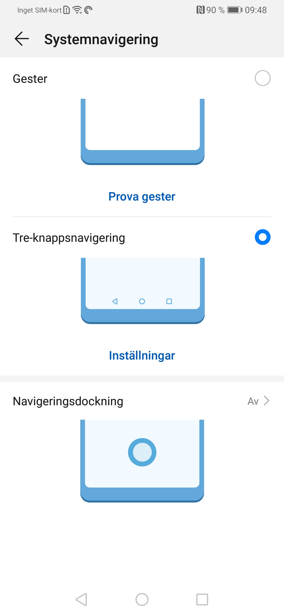 P30 Pro använder de tre klassiska navigeringsknapparna som standard. De är enkla att använda men tar upp lite av skärmutrymmet. Huawei erbjuder ett annat navigeringssystem som kallas Gester. Du kan trycka på knappen Prova gester för att se hur de fungera och utvärdera om du tror att du gillar det bättre än de statiska knapparna.