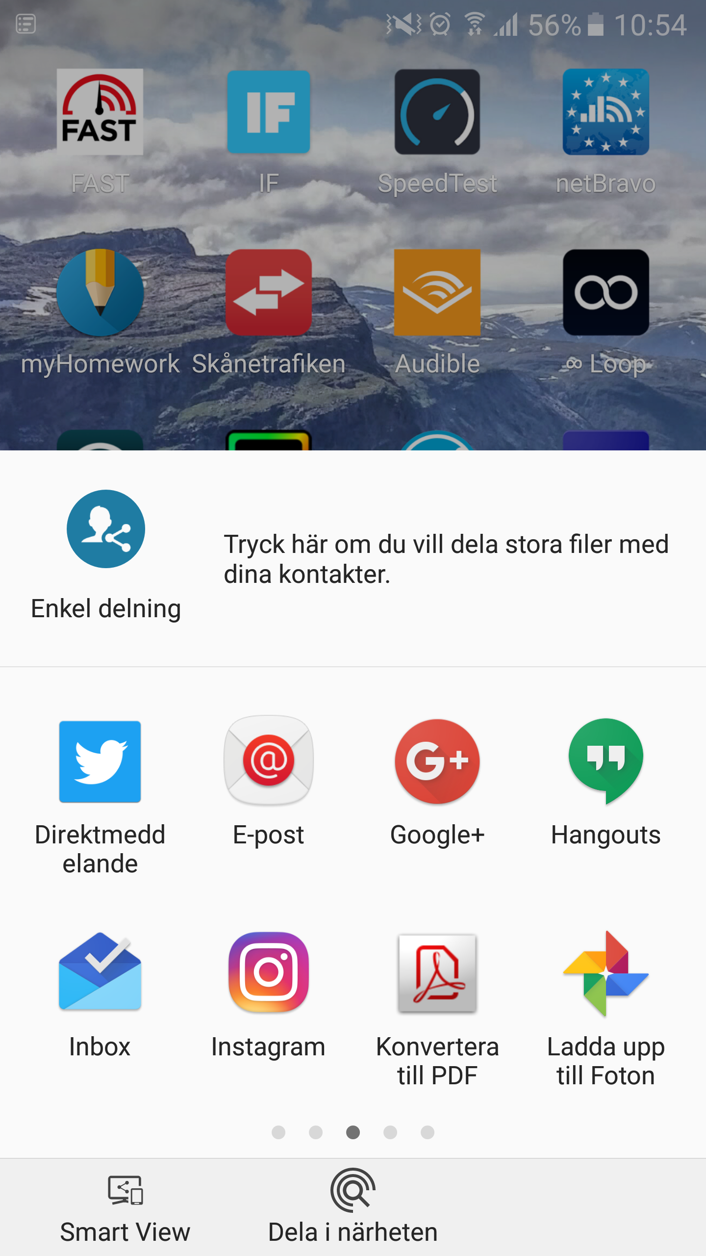 Om du vill dela bilden klickar du på Dela när du visar den i galleriappen. Här kan du välja att dela bilden med appar som du har installerade i din telefon. Du kan till exempel välja att skicka den via Gmail, ladda upp den till Instagram eller lägga till den i en anteckning. Om du väljer att skicka den som ett MMS är det värt att notera att bilden kommer att få en förändrad storlek för att den ska vara tillräckligt liten för att skickas. Om du vill spara bilden för dig själv kan du exempelvis ladda upp din till en molnlagringstjänst så som Google Drive. Där sparas bilden i sin fulla upplösning.