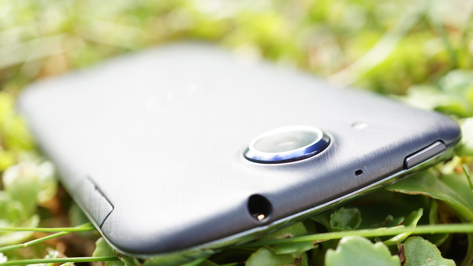 Baksidan av Acer Jade S är också tillverkad av plast och det känns tydligt i handen. Med tanke modellens pris har vi svårt att kritisera den för det. Det enda vi kan klaga på är att bakstycket inte går att ta av, vilket också betyder att telefonens batteri inte är utbytbart. På bakstyckets nedre halva hittar vi en högtalare medan baksidans övre halva bjuder på en stor kameralins, som tyvärr sticker ut en millimeter eller två från telefonens kropp men som i alla fall kan assisteras av en LED-lampa i mörka miljöer.