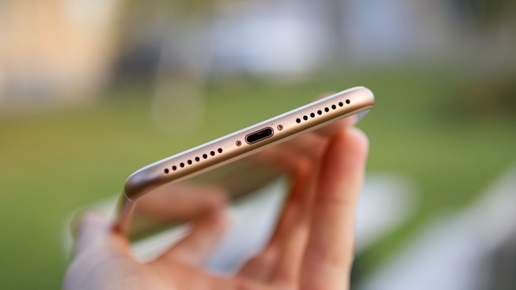 På ovansidan av iPhone 8 Plus finns ingenting av intresse men på undersidan finns en högtalare, mikrofon och en Lightning-port. Den Apple-specifika porten kan användas för laddning, synkronisering men även för att läsa SD-kort och skicka ut en videosignal med rätt adapter. Porten är mångsidig men erbjuder inga större fördelar som inte annars kan erbjudas av USB Typ-C – branschstandarden som används av alla andra smartphonetillverkare.