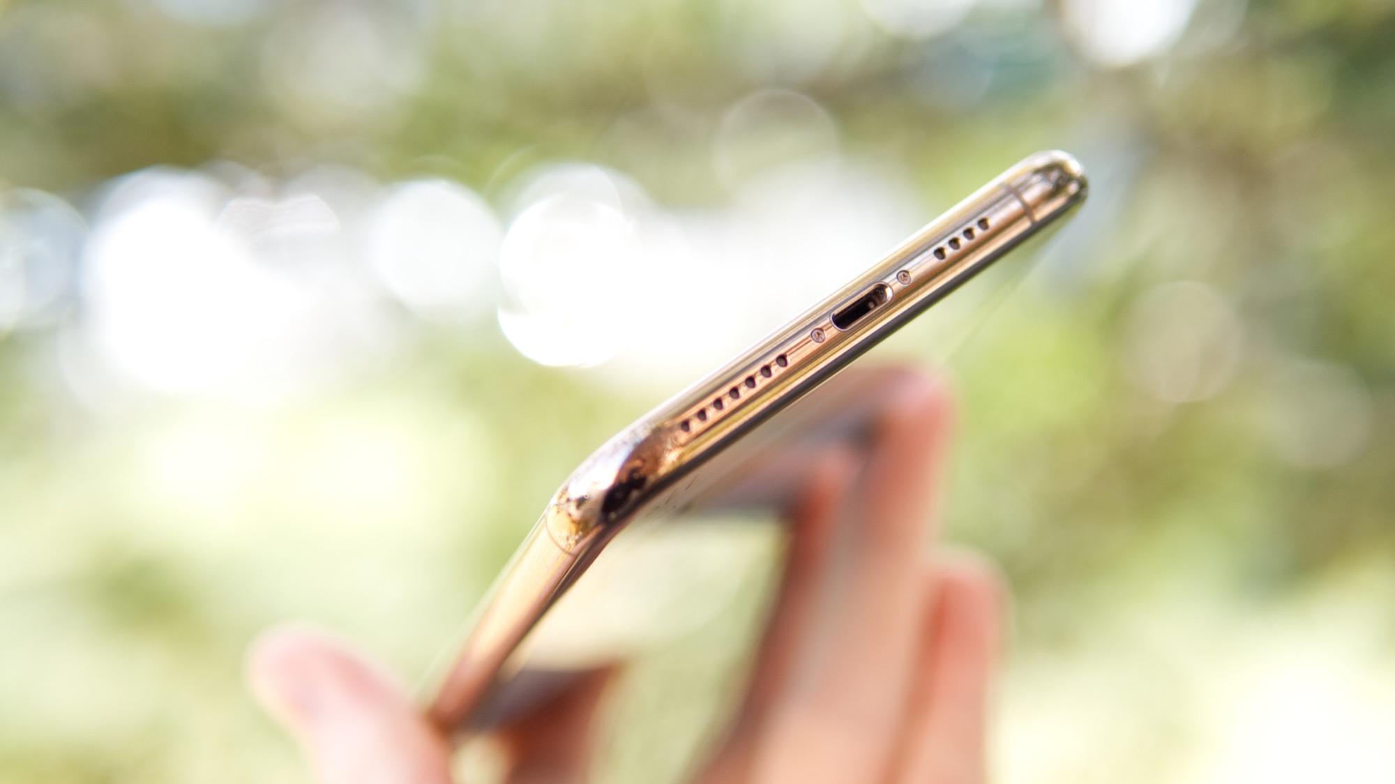 På undersidan av iPhone XS Max finns den vanliga Lightning-porten, alltså fortfarande en proprietär port, men också de vanliga hålen för mikrofonen och högtalaren. Här syns också en liten förändring i jämförelse med iPhone X. Nu är antalet hål på vardera sida om Lightning-porten olika. Det är visserligen en ganska liten detalj men det får undersidan att inte riktigt se så perfekt symmetrisk ut som den gjorde med iPhone X. Utöver det finns det nu ett nytt streck i metallbandet som inte heller är symmetriskt. Apple har nämligen gått från fyra till sex avbrott i metallbandet för att få plats med fler antenner, vilket ger telefonen stöd för fler LTE-band och snabbare mobil uppkoppling. Med det sagt finns det en risk att designperfektionisten tycker att strecken ser lite underligt placerade ut.