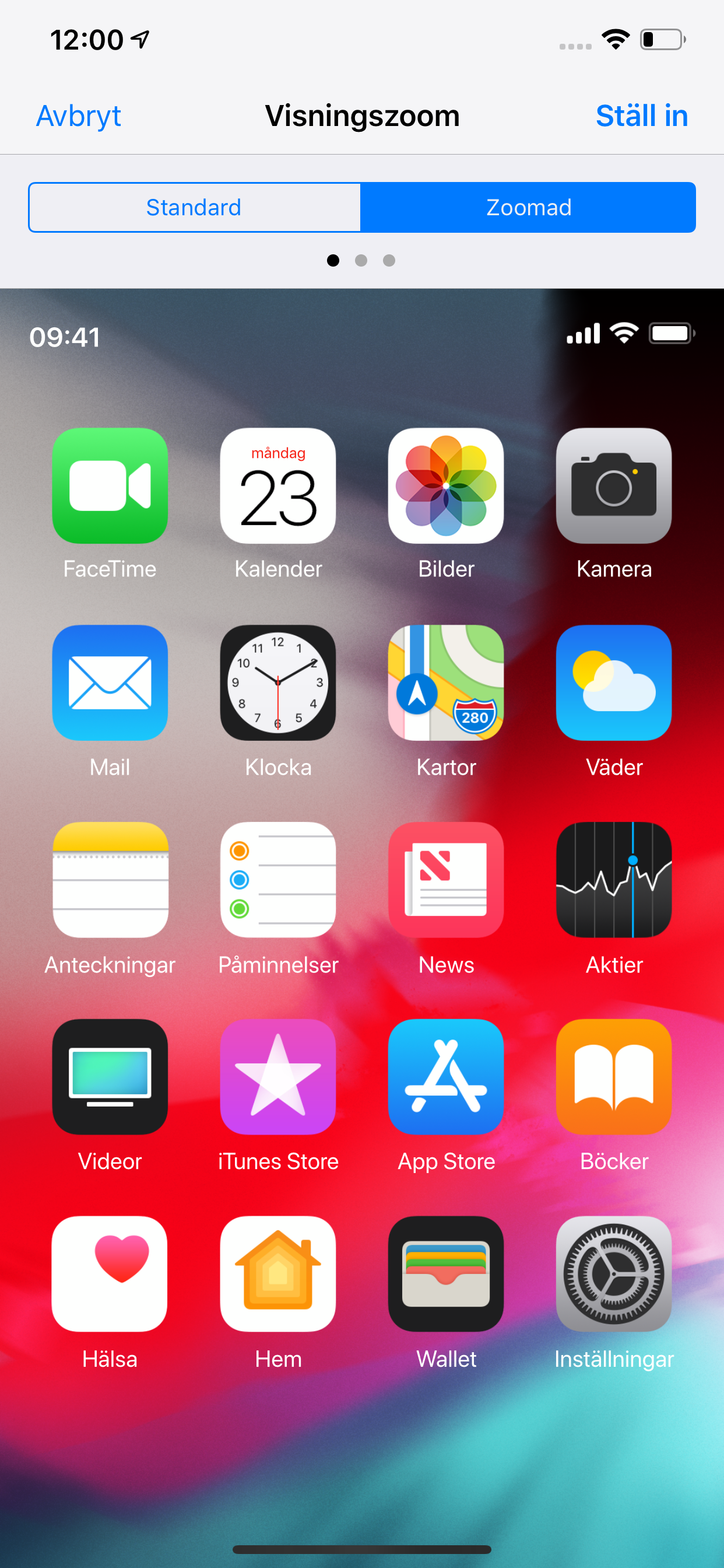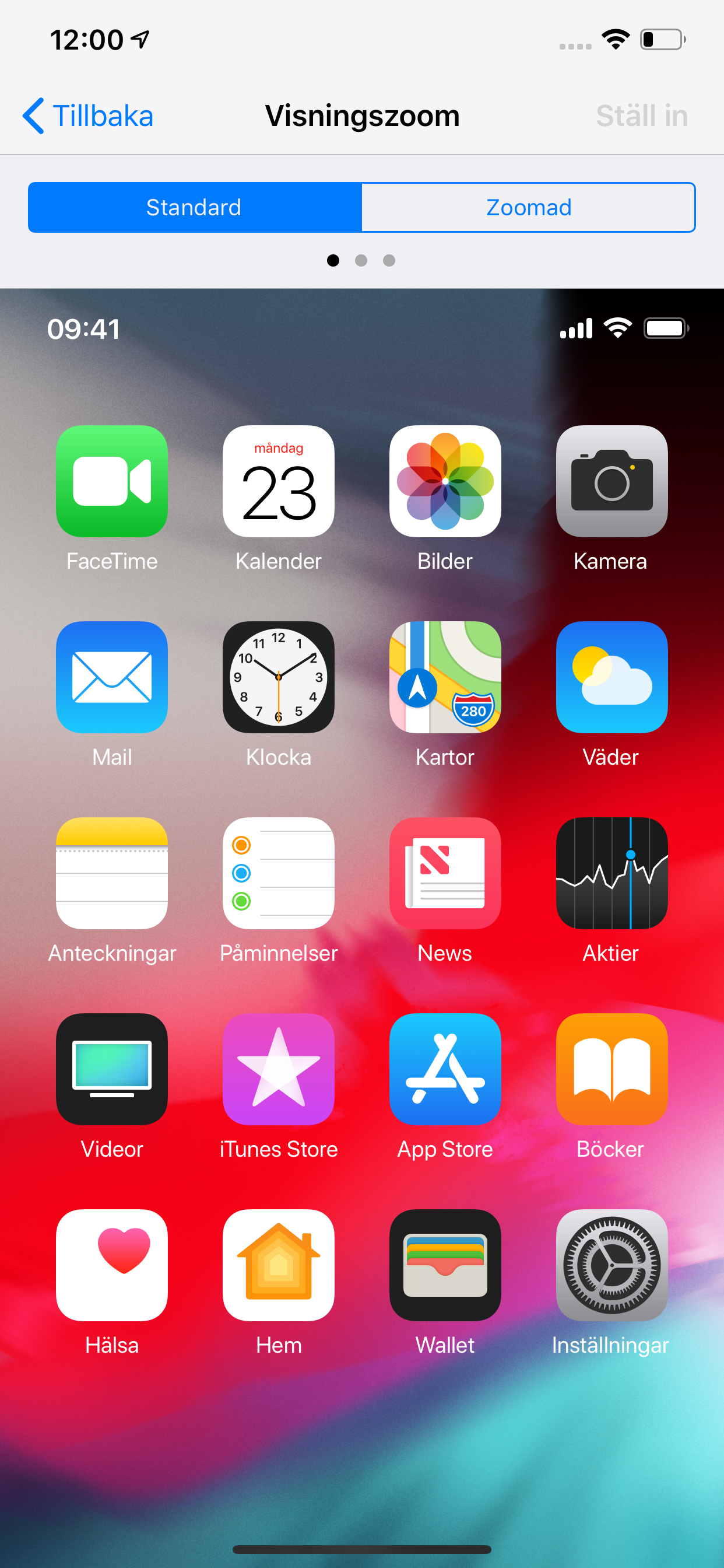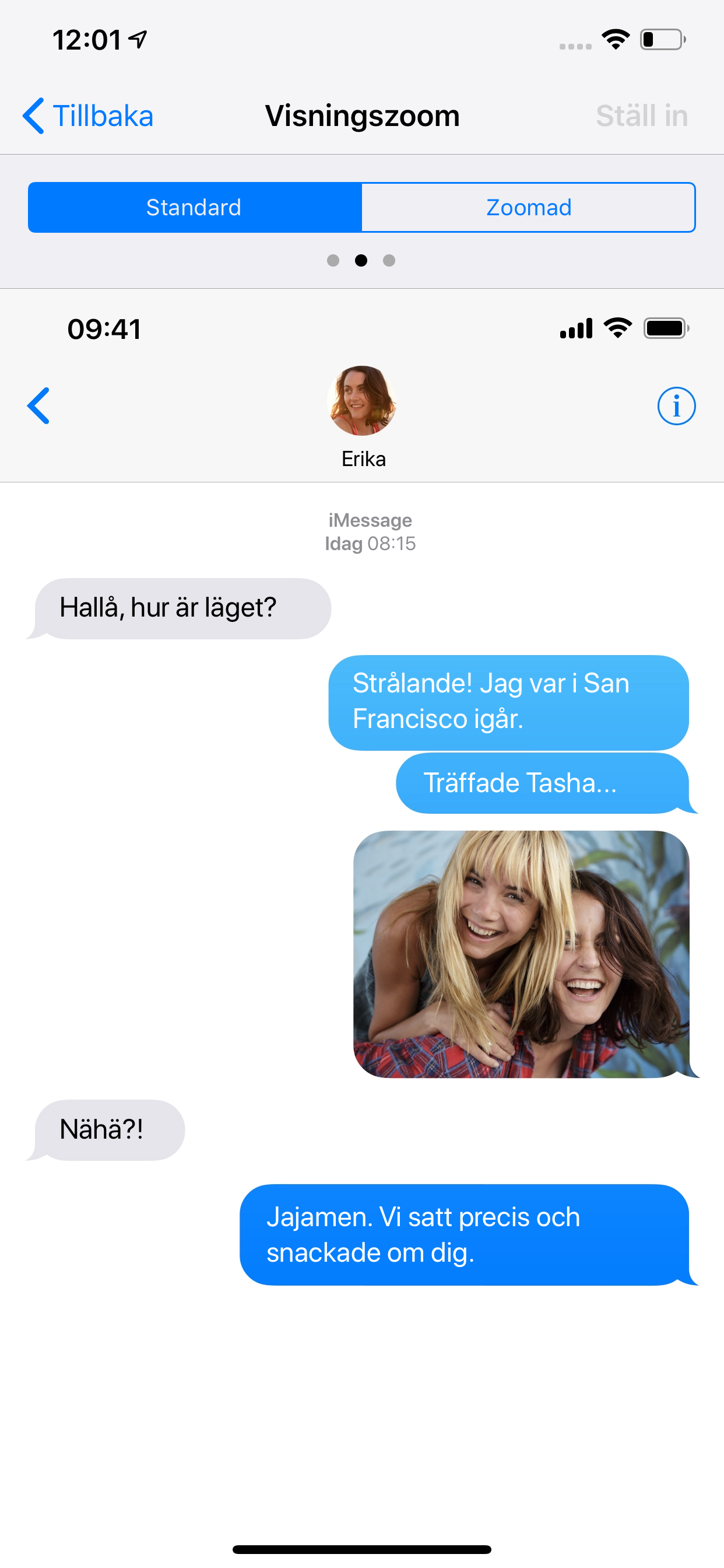Läs mer om mjukvaranApple har mycket riktigt gjort flera förändringar i iOS för att iPhone XS Max ska kunna dra nytta av sin stora skärm. Användare kan välja mellan ett Standard- och ett Zoomad-läge, där det sistnämnda visar innehåll på samma sätt som iPhone X/XS. Skillnaden mellan lägena är ganska liten. I Standard-läget är ikoner och texter fortfarande underligt stora och förvånansvärt lite får plats på den gigantiska skärmen. Det känns som att Apple har lagt större fokus på att använda den stora skärmen för att assistera personer med synnedsättning än på at hjälpa personer som vill få mycket gjort. Apples allmänna fokus på att tillhandahålla hjälpmedel för olika typer av personer är givetvis positivt men det hade varit lättare att motivera telefonens lite klumpiga storlek om mjukvaran också var bättre på att visa mer på skärmen samtidigt.
