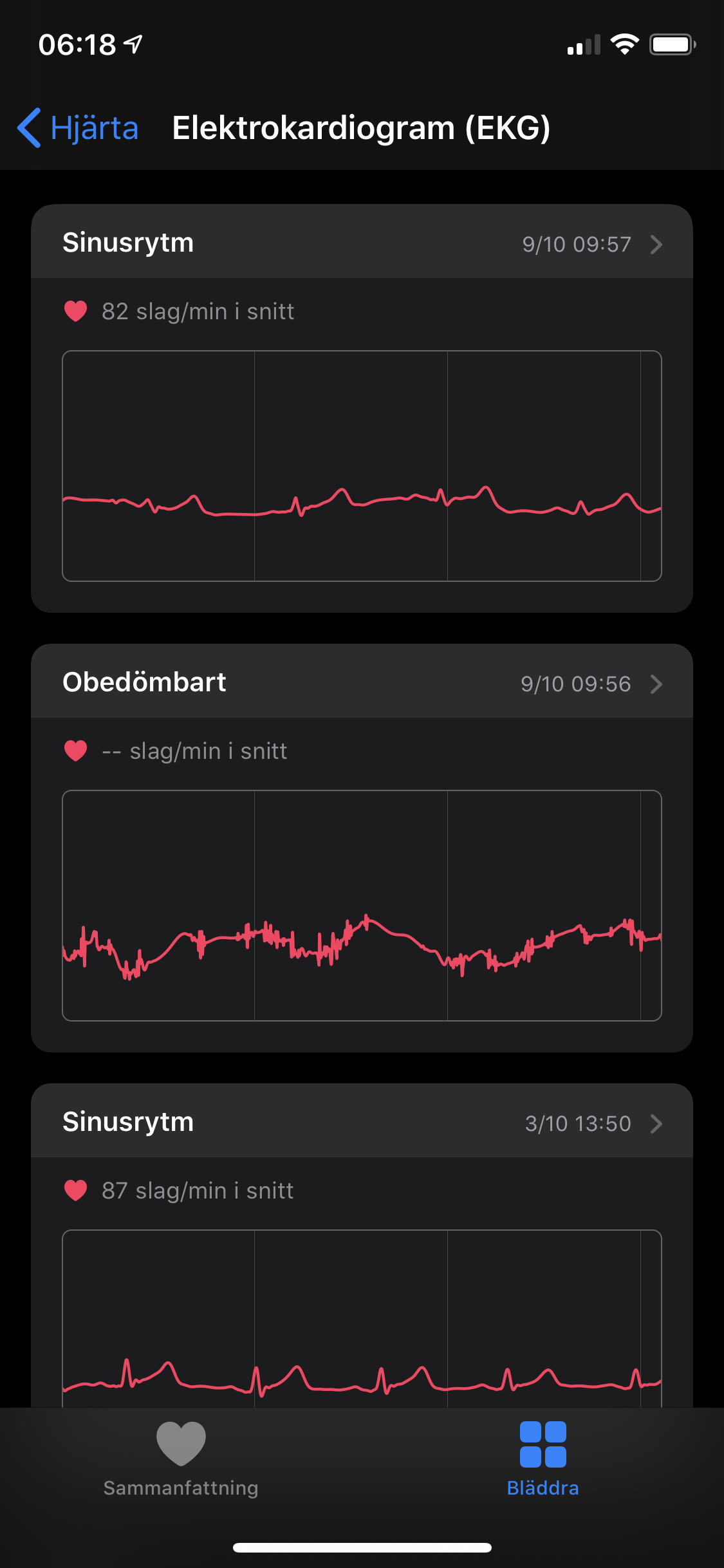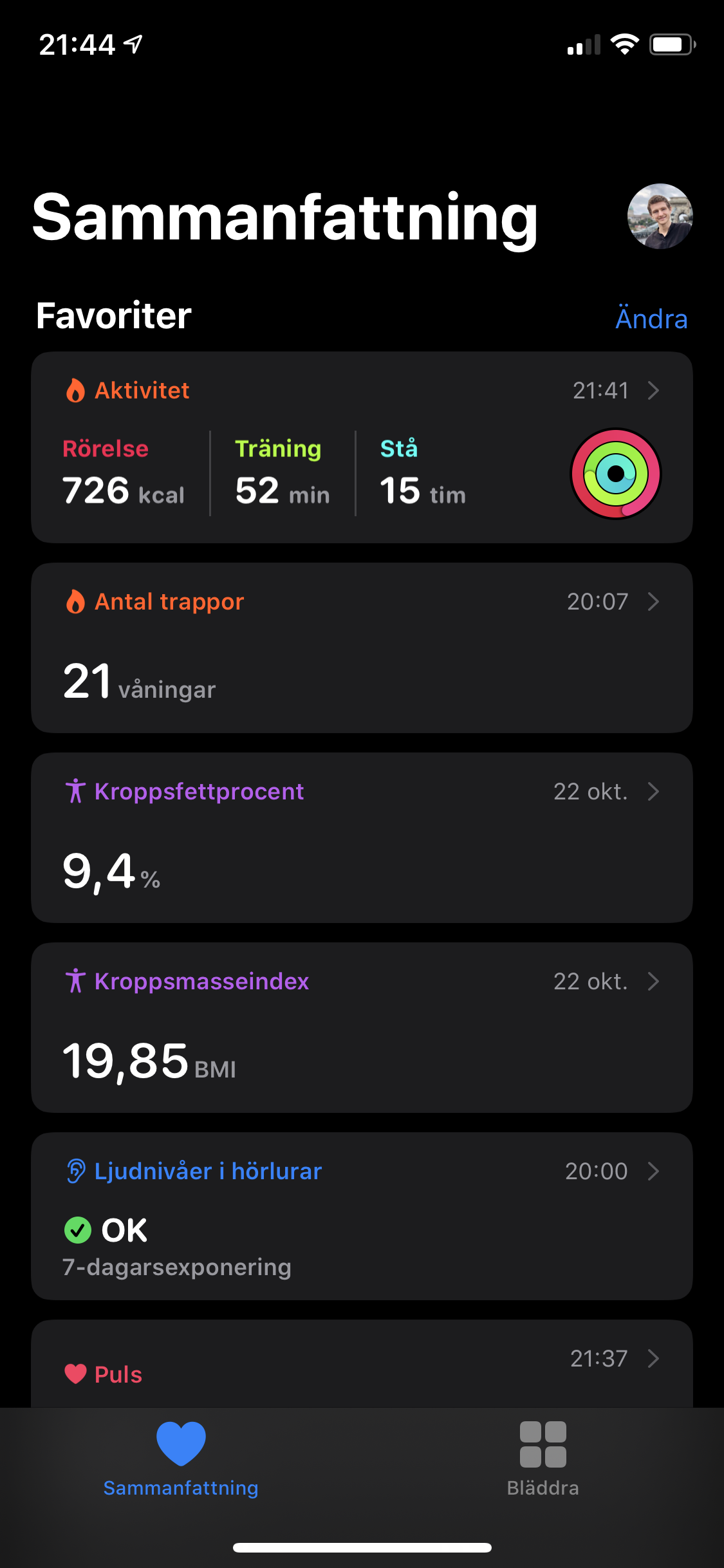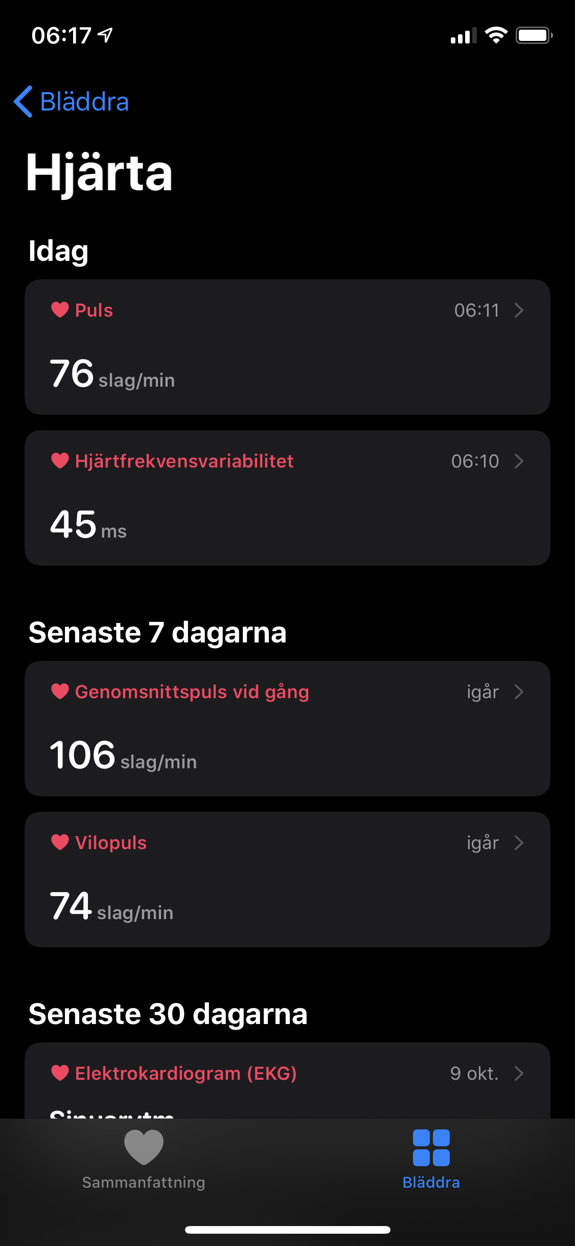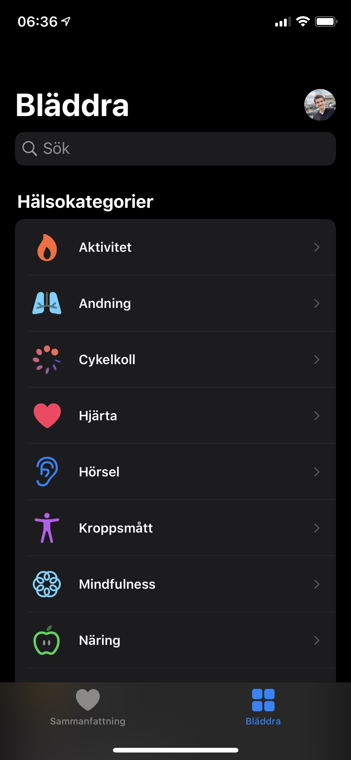 Appen Hälsa fungerar som en hub för träning- och hälsodata både från Apple Watch och andra aktörer. När vi testade Apple Watch 4 skrev vi att ”Väldigt många av kategorierna som visas kan vara överflödiga”. Appen visade då flera kategorier som inte har med klockan att göra i fyra flikar. Med ett nytt gränssnitt visar Hälsa nu två flikar: Sammanfattning och Bläddra, där första sidan ger oss en tydlig bild av värden vi valt att favorisera. Hälsa samlar fortfarande lika mycket information men en ny möjlighet att djupdyka i samtliga kategorier gör det lättare och mer överskådligt. Nya användare bör alltså inte bli lika överväldigade av den nya designen. Det är ett välbehövligt lyft från Apples sida. Tredje parter som Withings, Xiaomi och diverse sömnappar kan fortfarande synkronisera mätningar till Hälsa, vilket låter appen vara en central punkt där vi slipper bläddra igenom flertalet appar.