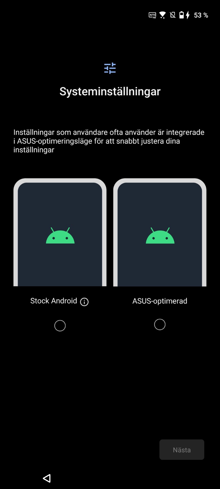 Asus erbjuder en mjukvara som är full av anpassningar och roliga inställningar, samtidigt som den gör det enkelt för många. När vi startar telefonen för första gången får vi välja om vi vill ha Google eller Asus användarupplevelse. Googles upplevelse har färre funktioner och en design som mer liknar hur Android brukar se ut medan Asus erbjuder ett eget designspråk och många egna funktioner. Det inkluderar till exempel gester för fingeravtrycksläsaren för att visa notiser med ett svep.