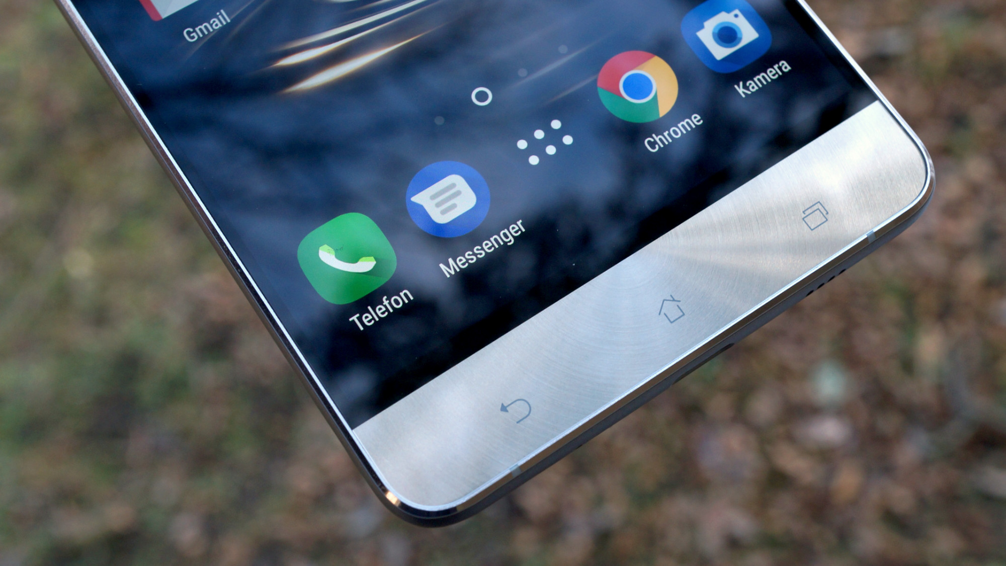 På framsidan av telefonen sitter en stor 5,7 tum skärm. Den stora skärmen gör hela telefonen stor och klumpig. Runt skärmen sitter en ordentlig ram. Det gör ZenFone 3 Deluxe nästan exakt lika bred som Google Nexus 6P.