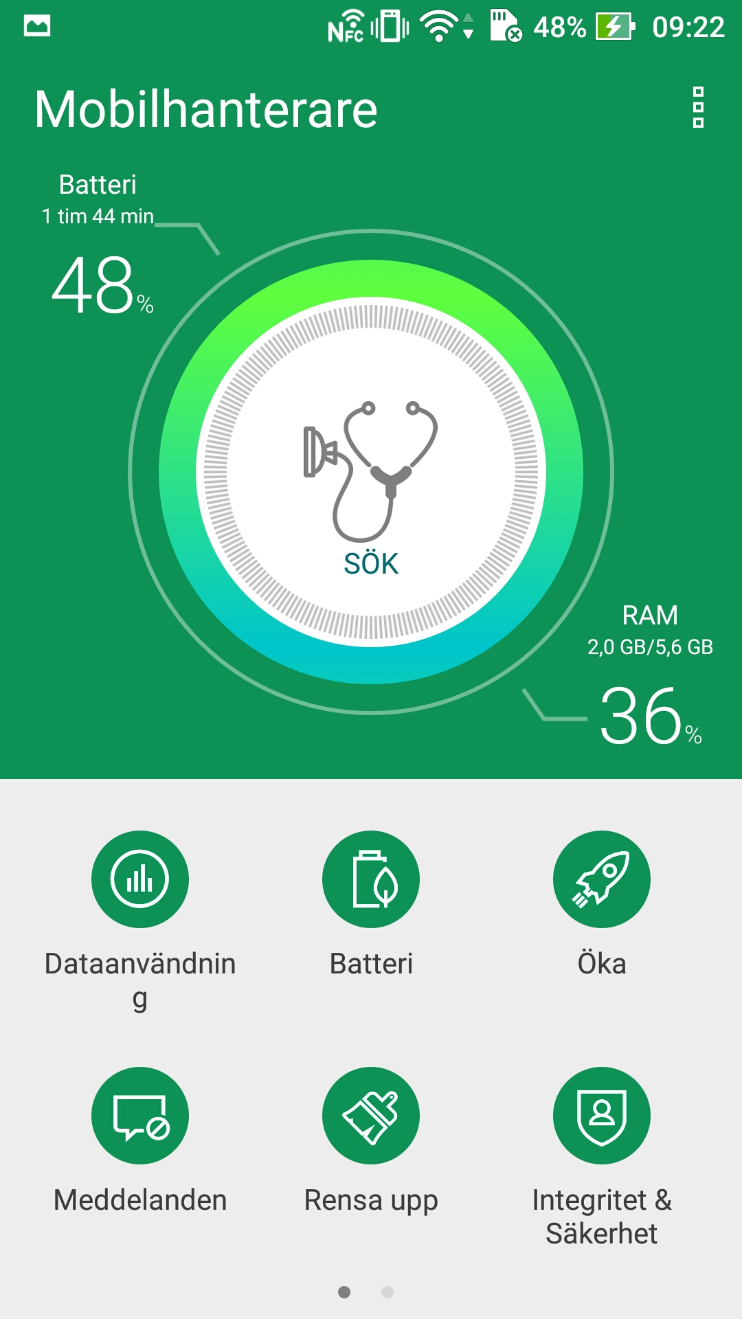 Mobilhanteraren lägger stor vikt vid batterianvändning. Den skickar notiser till användare om appar som använder systemresurser i bakgrunden. Användare kan välja att manuellt stänga av dessa appar. Problemet är att notiserna är frekventa och ofta helt meningslösa. De är inte helt heller enkla att få tyst på. Vi hade hellre sett att Asus skrotat hela idén med manuell resurshantering än att användare konstant måste störas av meningslösa notiser.