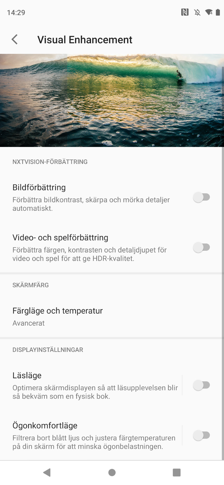 Fairphone har lagt till ett fåtal funktioner. Eftersom Android fortfarande saknar ett ordentligt system för att styra skärminställningar, är det en funktion som Fairphone har lagt till. Med mjukvara från TCL Nxtvision går det att ”förbättra bildkontrast, skärpa och mörka detaljer automatiskt”. Det finns ett liknande läge för video och spel samt en inställning av ”skärmfärg”. Här finns Levande, Naturlig och Avancerat, där det sistnämnda erbjuder dynamisk vitbalans.