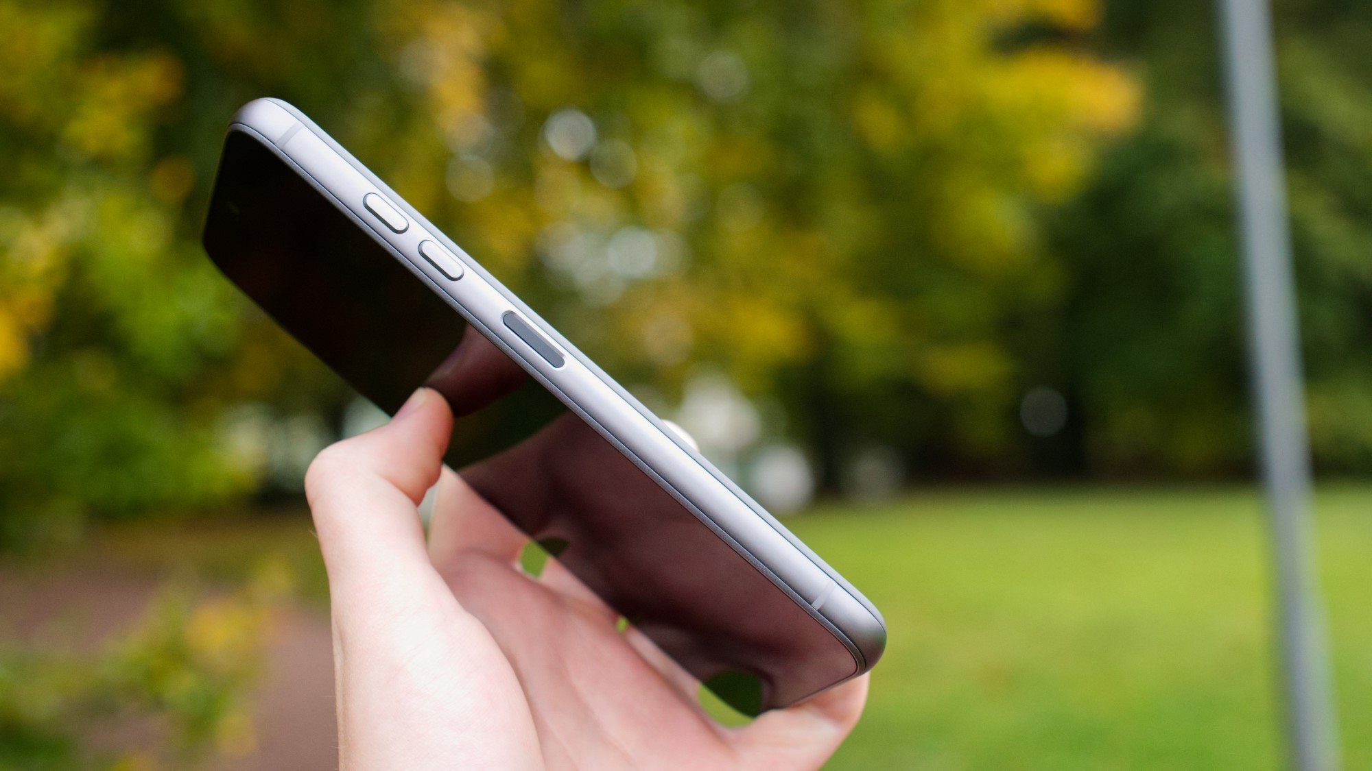 Längs telefonens högra sida finns en på/av-knapp med en inbyggd fingeravtrycksläsare. Knappen är nedsänkt i metallramen och kan därför vara lite svår att känna sig fram till men den ger helt okej fysisk återkoppling. Läsaren är pålitlig och normalt kvick. Den kräver dock en bra inläsning av hela fingret på grund av sin avlånga design. Ovanför knappen finns också två volymknappar. De sticker ut, ger bra återkoppling och är praktiskt separerade för att vara enkla att använda.
