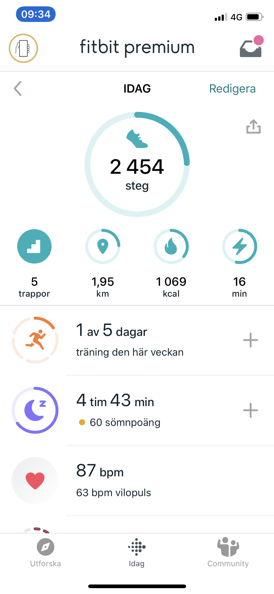 En fördel som Fitbit har framför flera konkurrenter är telefonappen. Precis som Garmin, Huawei och Amazfit är Fitbits app både till för telefonanslutnignen och en hubb för träning- och hälsodata. Just det sistnämnda har ett tydligt fokus, där själva uppkopplingen är till för att glömma när inställningarna är gjorda. Första sidan visar en sammanfattning av samtliga aktiviteter, som stegräkning, trappor, träning och pulsvärden. Från dessa överskådliga kort går det att dyka in i en mer djupgående vy. Här visas allt från till exempel när vi gick som mest, eller minst, och hur vi sov. Enkelheten är nyckeln till att Fitbits app är så populär. Vi uppskattar också att det är lätt att hitta beskrivningar av data, fakta om hälsa och om hur Fitbit prioriterar sin spårning.