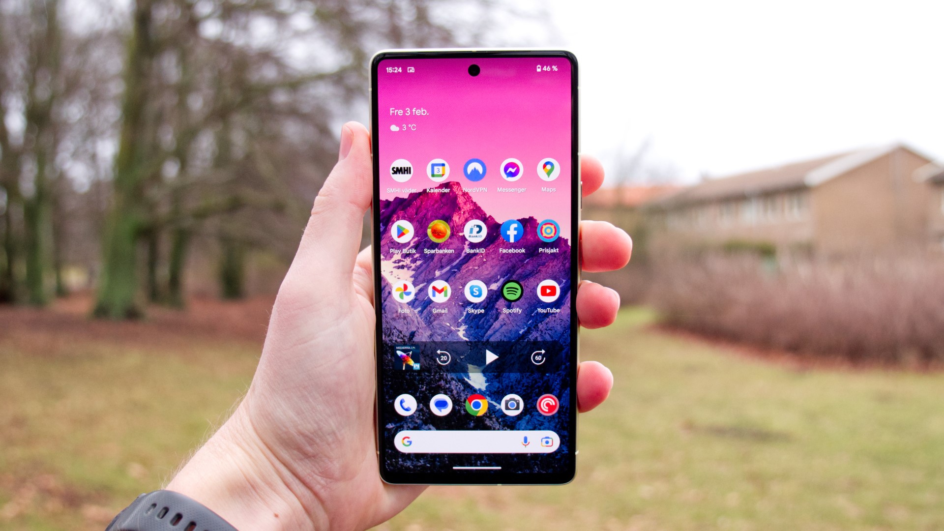 Google Pixel 7 har en bra AMOLED-skärm på 6,3 tum. Full HD-upplösningen är inte marknadsledande men bra för formatet. Skärmens färgåtergivning är mycket bra, även om vitbalansen är lite för kallblå. När vi tar telefonen utomhus visar den prov på hög ljusstyrka. Den når 955 nits över hela skärmen och 1 400 nits med HDR-material. Det är 300 nits lägre än Pixel 7 Pro men ändå ett bra resultat. Med tanke på telefonens pris får användare en skärm som ser riktigt bra ut. Med det sagt har skärmen bara 90 Hz uppdateringsfrekvens. Den ser kort sagt inte riktigt lika snabb och mjuk ut som många konkurrenter. Vi är samtidigt mest glada över att vi inte behöver stirra på en 60 Hz-panel!