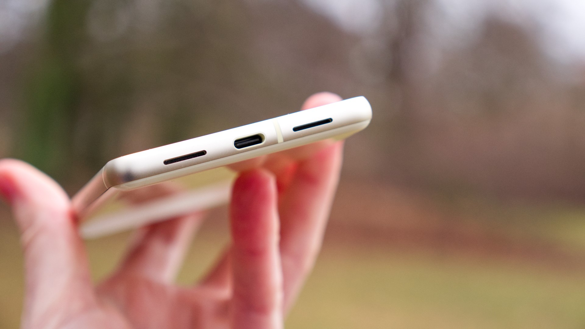 Resten av telefonens design är väldigt enkel. Sidorna är gjorda av metall och är rundade för att göra att telefonen ligger bekvämt i handen. Längs undersidan finns en högtalare, mikrofon och en USB C-port för laddning och data över USB 3. Längs vänster sida finns en kortplats med utrymme för ett nanoSIM men inget mer. Det går att aktivera ett sekundärt SIM i form av ett eSIM men det finns alltså ingen extern lagring.