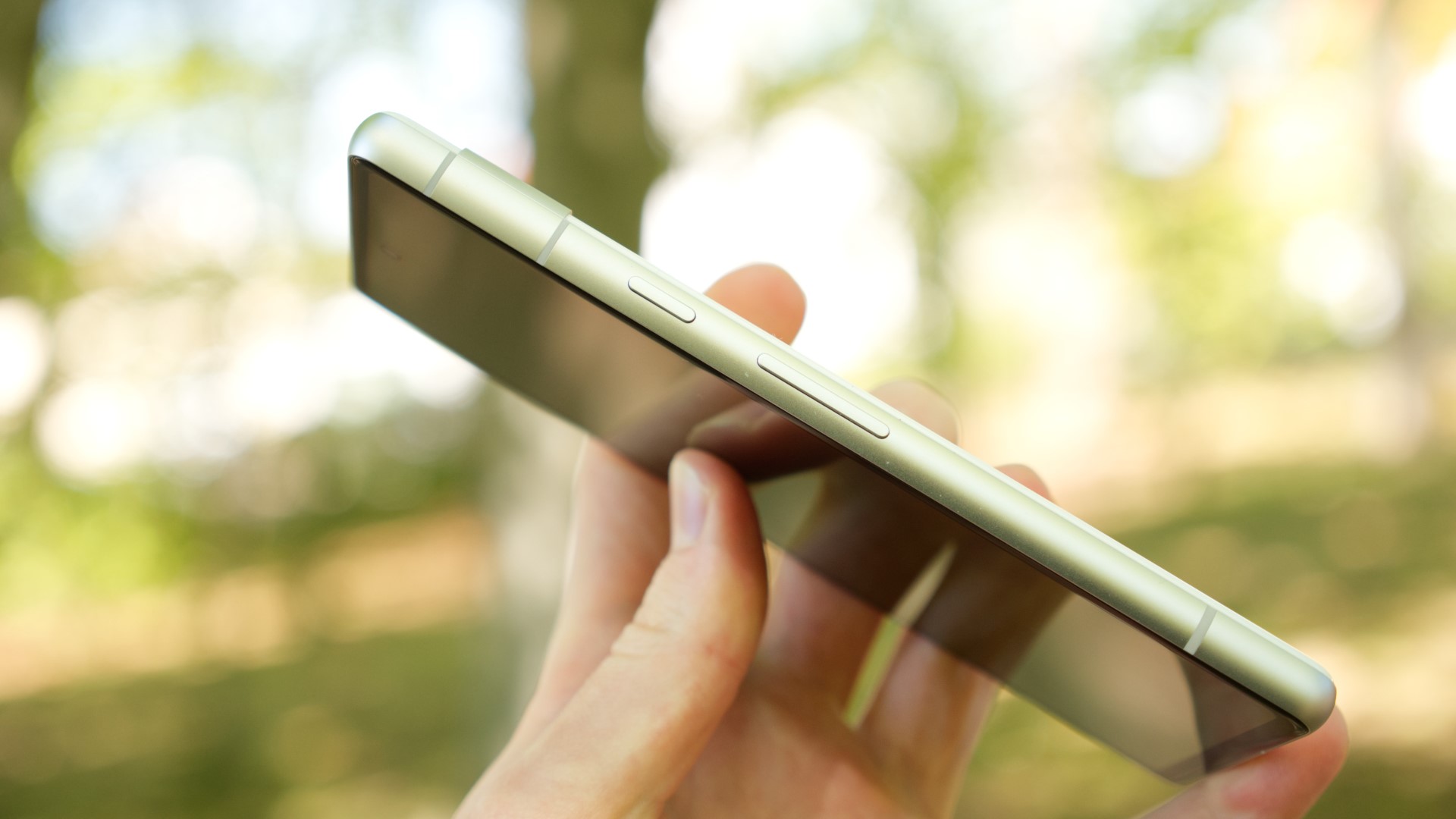 Pixel 7a är stadig i handen tack vare en gedigen metallram. Baksidan känns också väl konstruerad och undviker risker att spricka eftersom den är gjord av plast. Ett problem med plast är att det är lätt att repa. Vi rekommenderar därför alla att skaffa ett skal till telefonen som kan användas från dag ett.