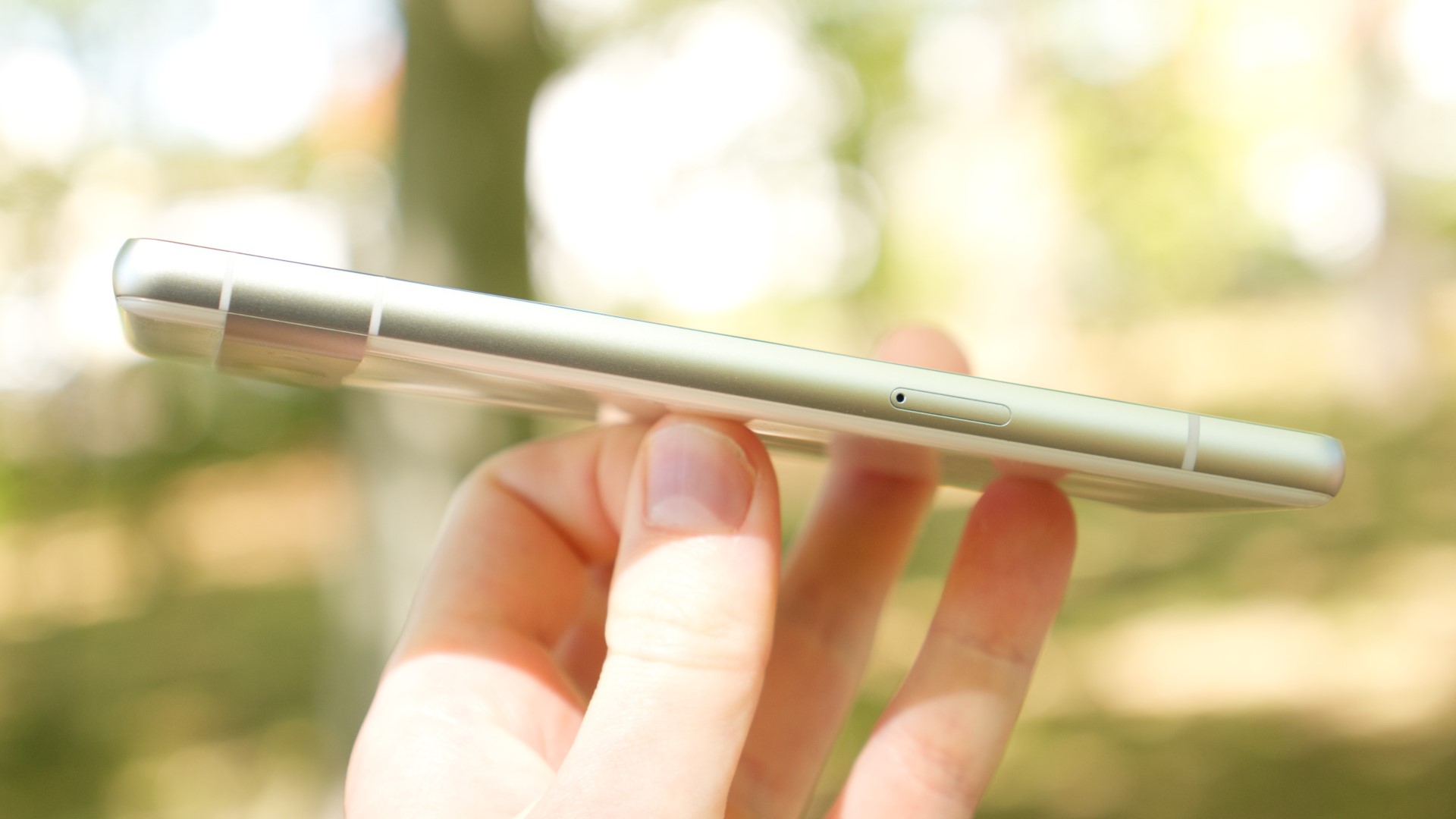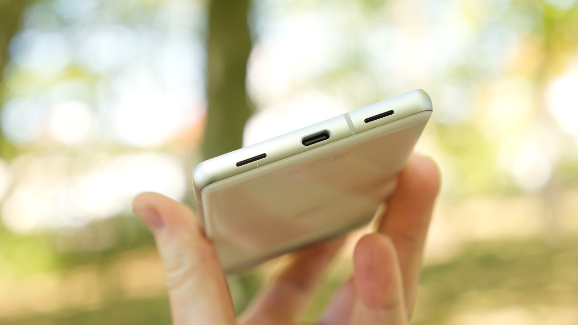 Längs höger sida finns en av/på-knapp och volymknappar som är lätta att känna och ger bra fysisk återkoppling. På ovansidan finns en sekundär mikrofon och längs vänster sida finns en kortläsare med plats för ett nanoSIM-kort. Det finns inget stöd för microSD-kort eller ett sekundärt nanoSIM men det går att aktivera ett eSIM. Det är ovanligt för klassen. Undersidan bjuder på en USB C-port, en högtalare och en mikrofon.