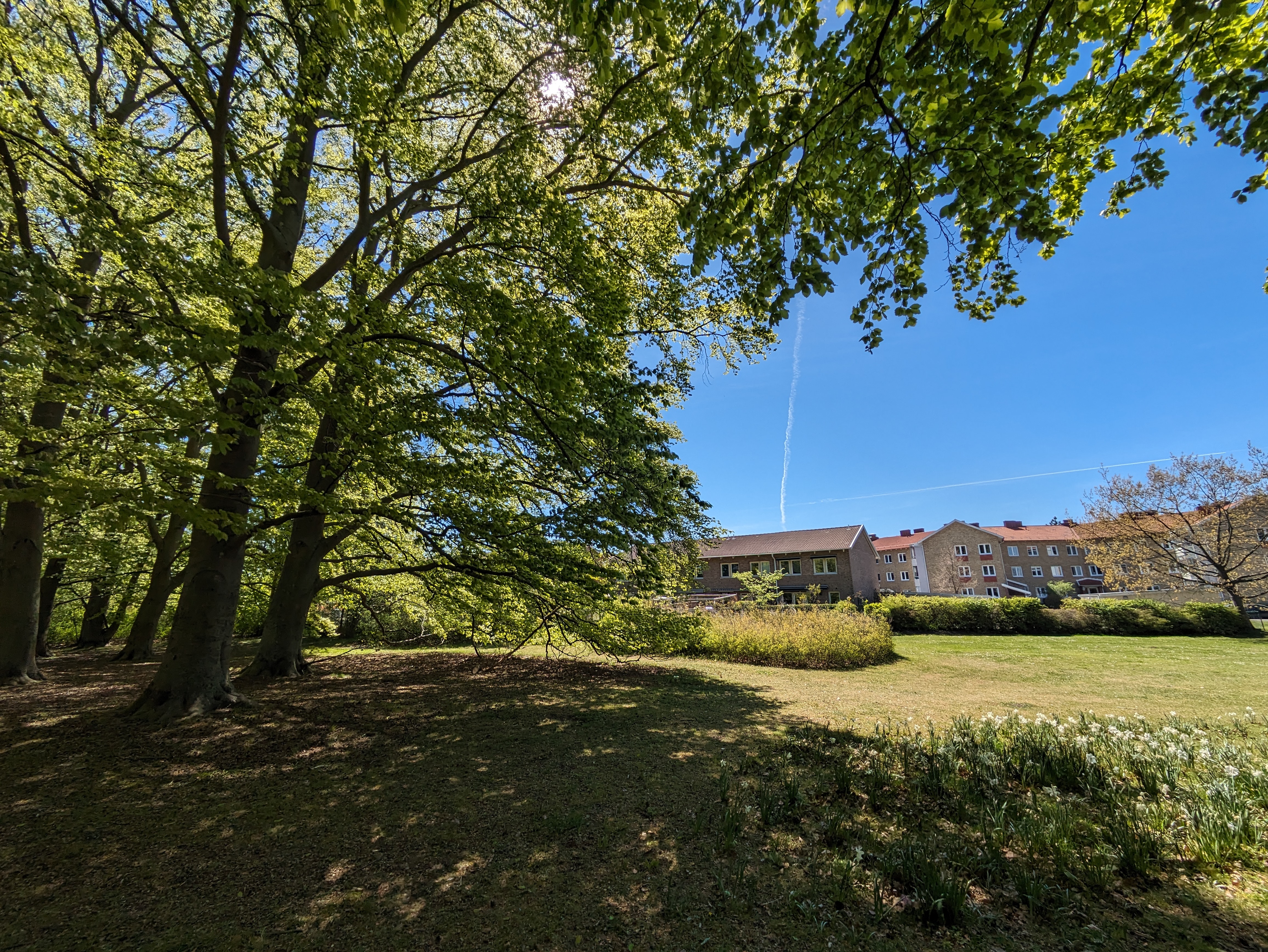 Vidvinkelkameran använder en 13 MP-sensor som erbjuder helt okej bildkvalitet. Kameran byter ovanligt bra skärpa mot lite ojämn bildbehandling och brusreducering. Det fungerar ganska bra för vidvinkelkameran, som ändå inte är bra nog för att användas i stora format. Vi tycker därför att Pixel 7a ger en högre upplevd bildkvalitet än iPhone 13 – det är imponerande!