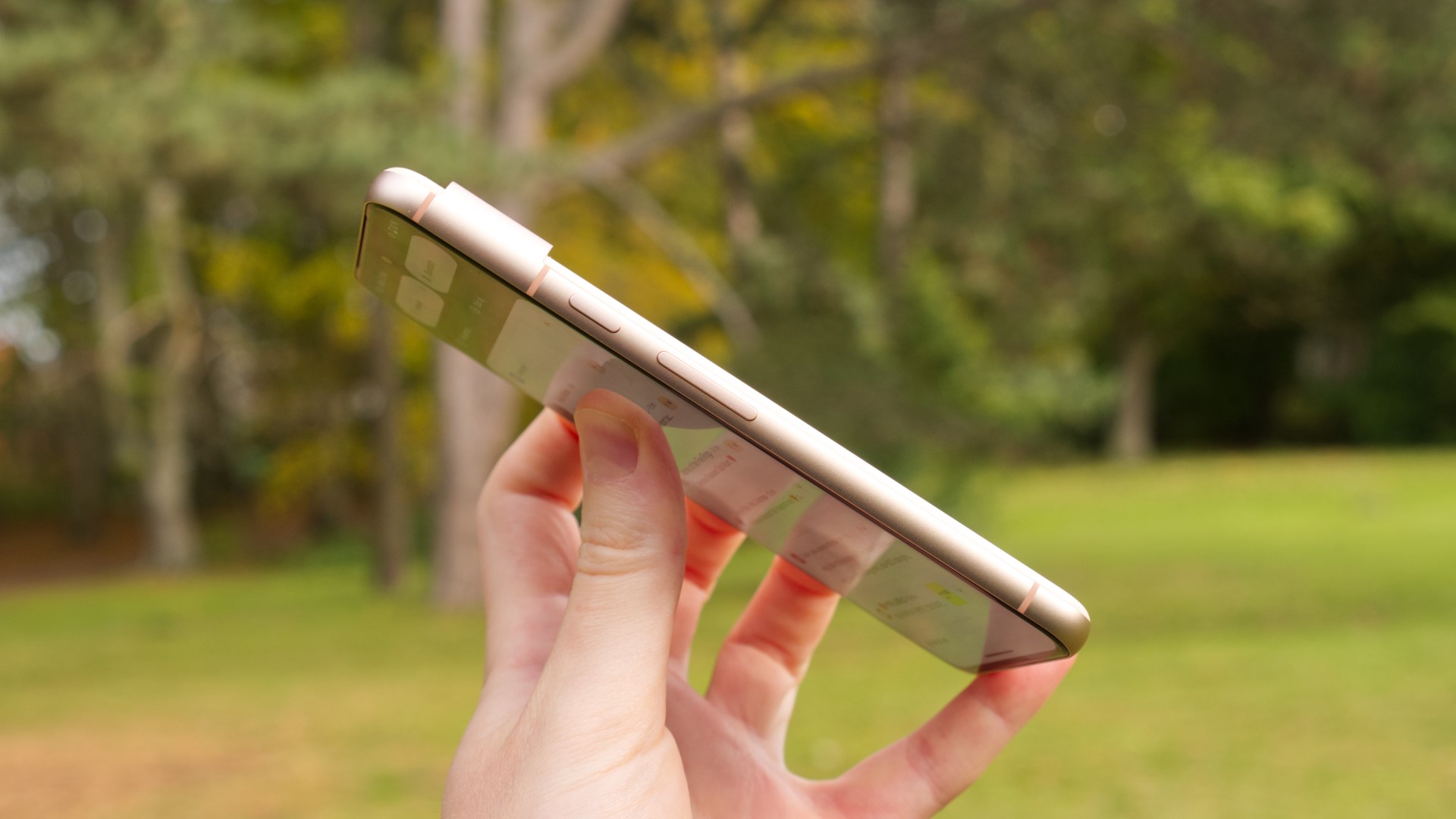 Pixel 8 har en rund och bekväm design som avbryts av ett stort kamerahus som sticker ut mer än två millimeter och har en vass metallkant. Även om vi oftast undviker att hålla handen där, är den minst sagt obekväm när vi råkar röra den. För att undvika den stora kameran, skulle vi föredra att använda ett skal som gör kanten lite mindre skarp. Med det sagt är den speciella kameradesignen också ett designelement som gör att Pixel 8 sticker ut från mängden.