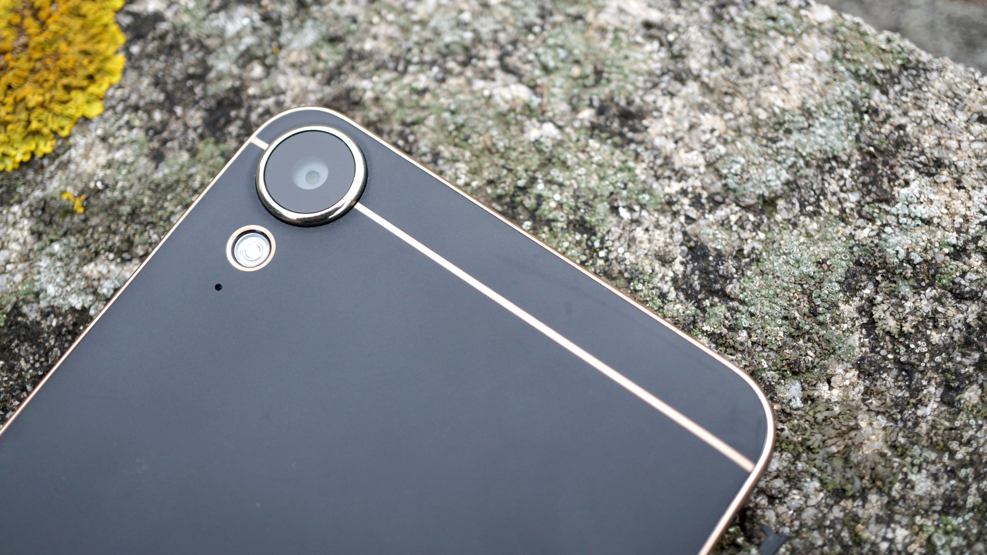 De materialval som HTC gjort inger tyvärr ingen känsla av kvalitet. Telefonen är nästan helt byggd av plast. Telefonens plastskal sitter visserligen ordentligt på telefonen men det kan inte konkurrera med telefoner så som Samsung Galaxy A5 (2016) som använder glas och metal för att ge en stadig byggkvalitet. Plastbaksidan på Desire 10 Lifestyle har en matt finish som är lätt att hålla ren. Till skillnad från vissa andra plasttelefoner är inte bakstycket ständigt täckt av fett och fingeravtryck. Längst upp i det vänstra hörnet sitter telefonens kamera. Den sticker ut lite från baksidan och riskerar därför att repas lättare än kameror som kan hålla sig innanför telefonens skal.