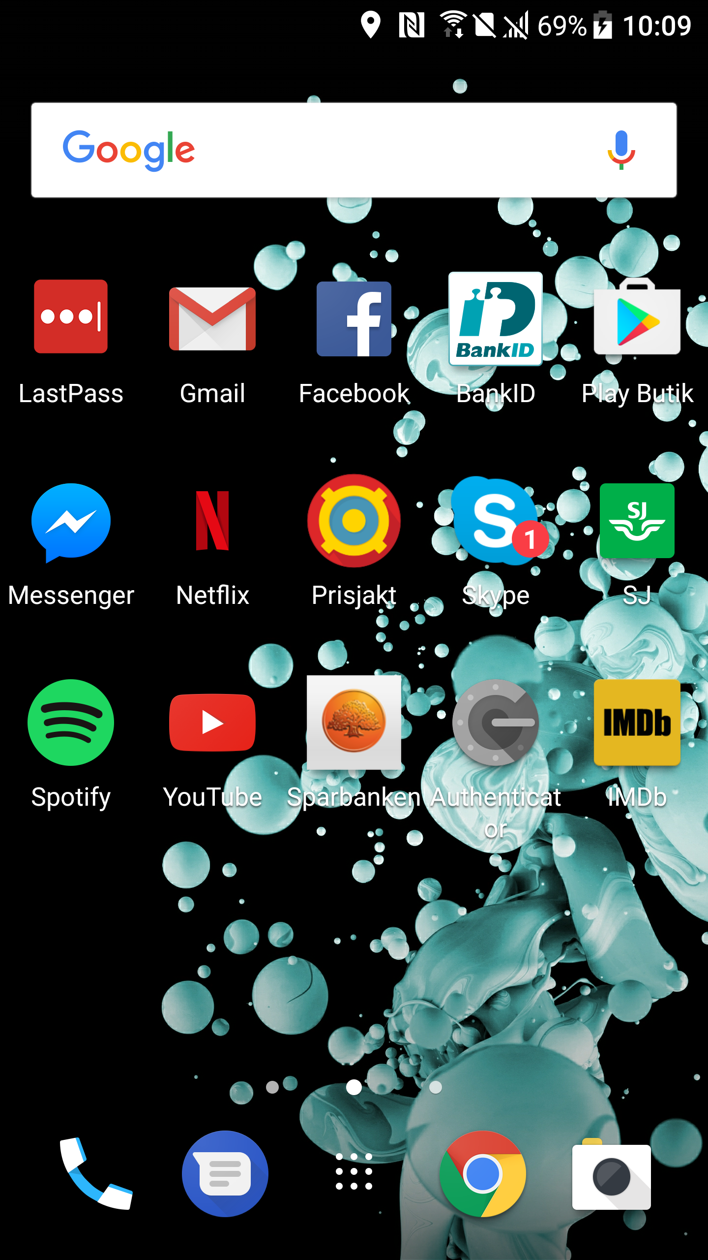 Ovanför den stora 5,7 tum skärmen sitter inte bara en videosamtalskamera och en hörlur. Här finns också en extraskärm. Skärmen sitter kant-i-kant med huvudskärmen. Den är avlång och ligger längs med den övre kortsidan av huvudskärmen. Extraskärmen sträcker sig cirka 75 procent av huvudskärmens bredd eftersom videosamtalskameran sitter till vänster. Extraskärmen är helt separat från huvudskärmen men de sitter alltså kant i kant och har funktioner som huvudskärmen saknar. Vi återkommer till extraskärmens funktioner i mjukvarudelen av detta testet.