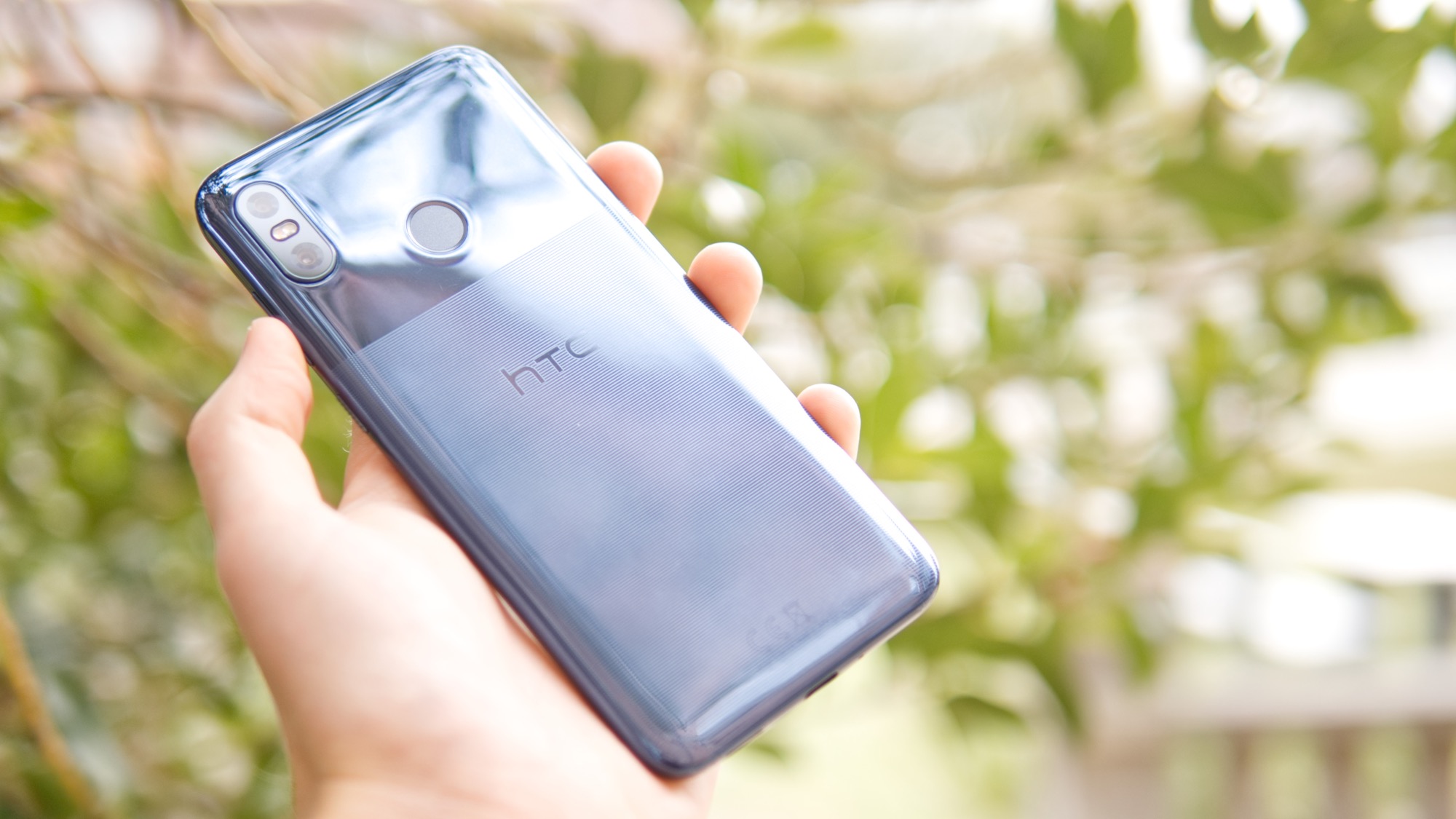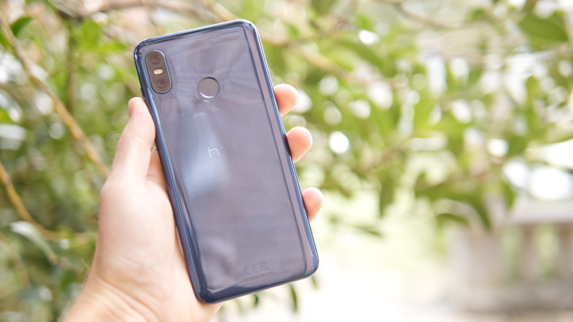 I ena hörnet av baksidan finns en kameramodul med två kameror och två LED-lampor. Modulen sticker ut en millimeter från baksidan och det finns ingen skyddande ram runt linsen. Det gör att linsen tyvärr riskerar att repas. Det gör också att telefonen ligger lite ostadigt på ett platt bord. De två kamerorna har i alla fall fördelen att de har en design som troligen får många att associera den med en viss dyr konkurrent. Med ett pris som är 3–4 gånger lägre är det en association som HTC uppenbarligen vill att konsumenter ska göra.