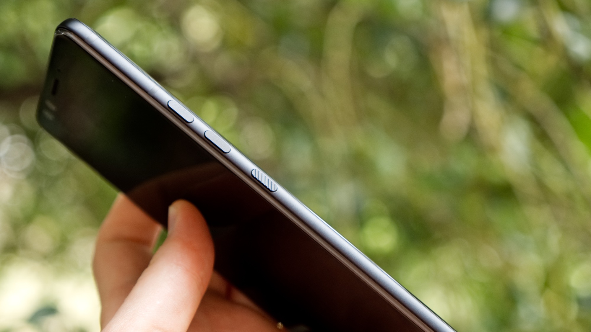 Runt telefonen sitter ett metallband som är grundstommen i telefonens konstruktion. På vänster sida finns en kortläsare med plats för två nanoSIM-kort men inget microSD-kort. På ovansidan finns en mikrofon och på undersidan finns ytterligare en mikrofon, en högtalare och en USB Typ-C-port.