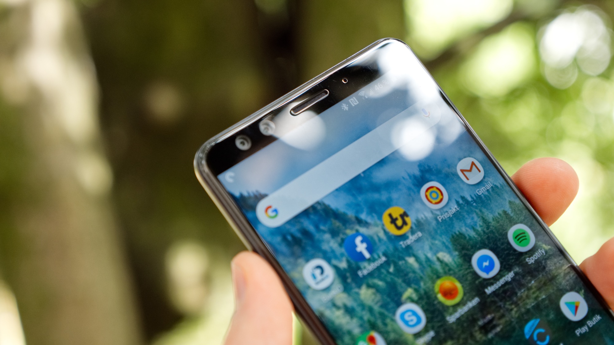 Ovanför skärmen finns en hörlur som agerar sekundär högtalare. Här finns också dubbla frontmonterade högtalare och en liten LED-lampa för att visa när notiser väntar.