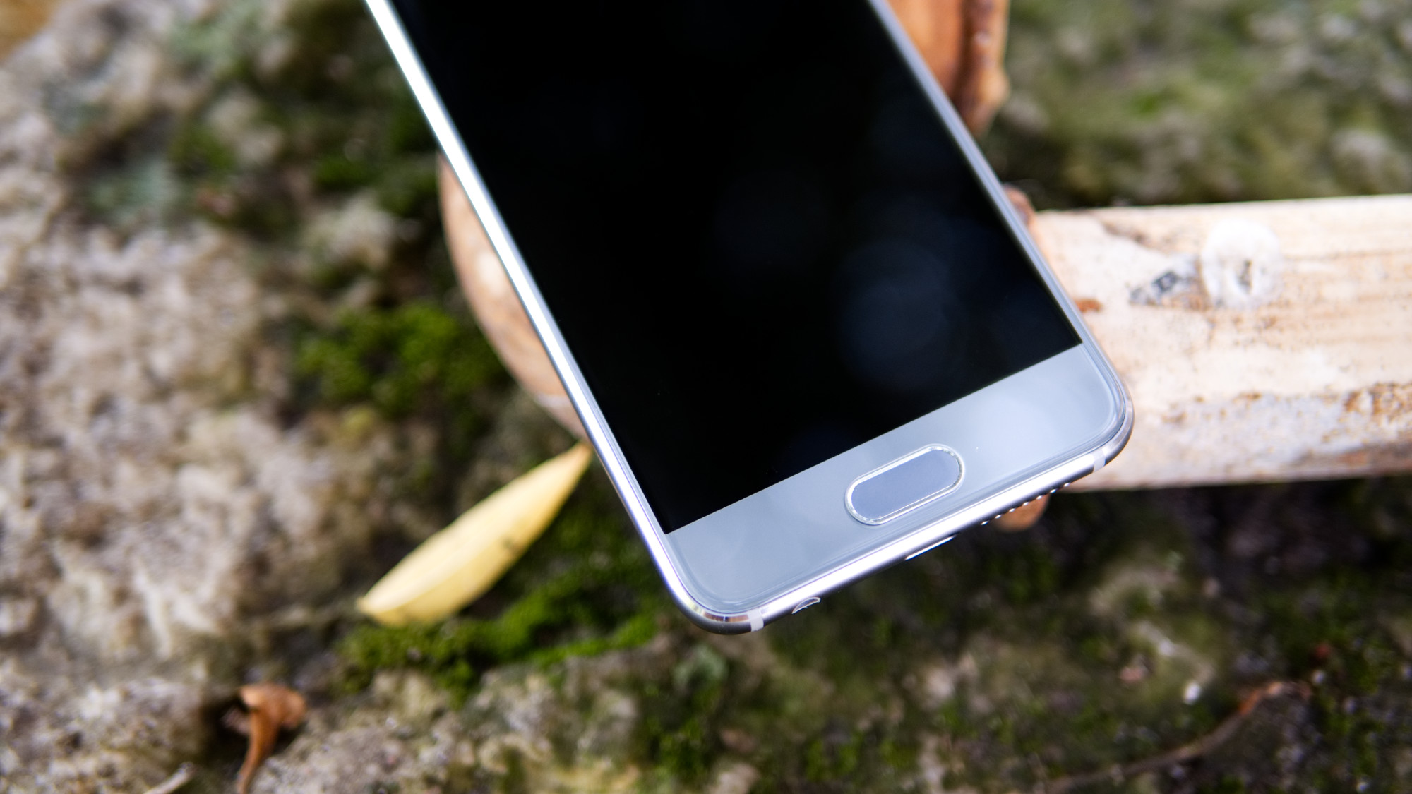 Under skärmen sitter en fingeravtrycksläsare som är både riktigt snabb och pålitlig och bredvid den finns två osynliga kapacitiva navigeringsknappar som lyser upp när de vidrörs. Knapparna fungerar bra men kan ersättas av gester på fingeratrycksläsaren som kan aktiveras i telefonens mjukvara. Ovanför skärmen finns en hörlur och en framåtriktad kamera.