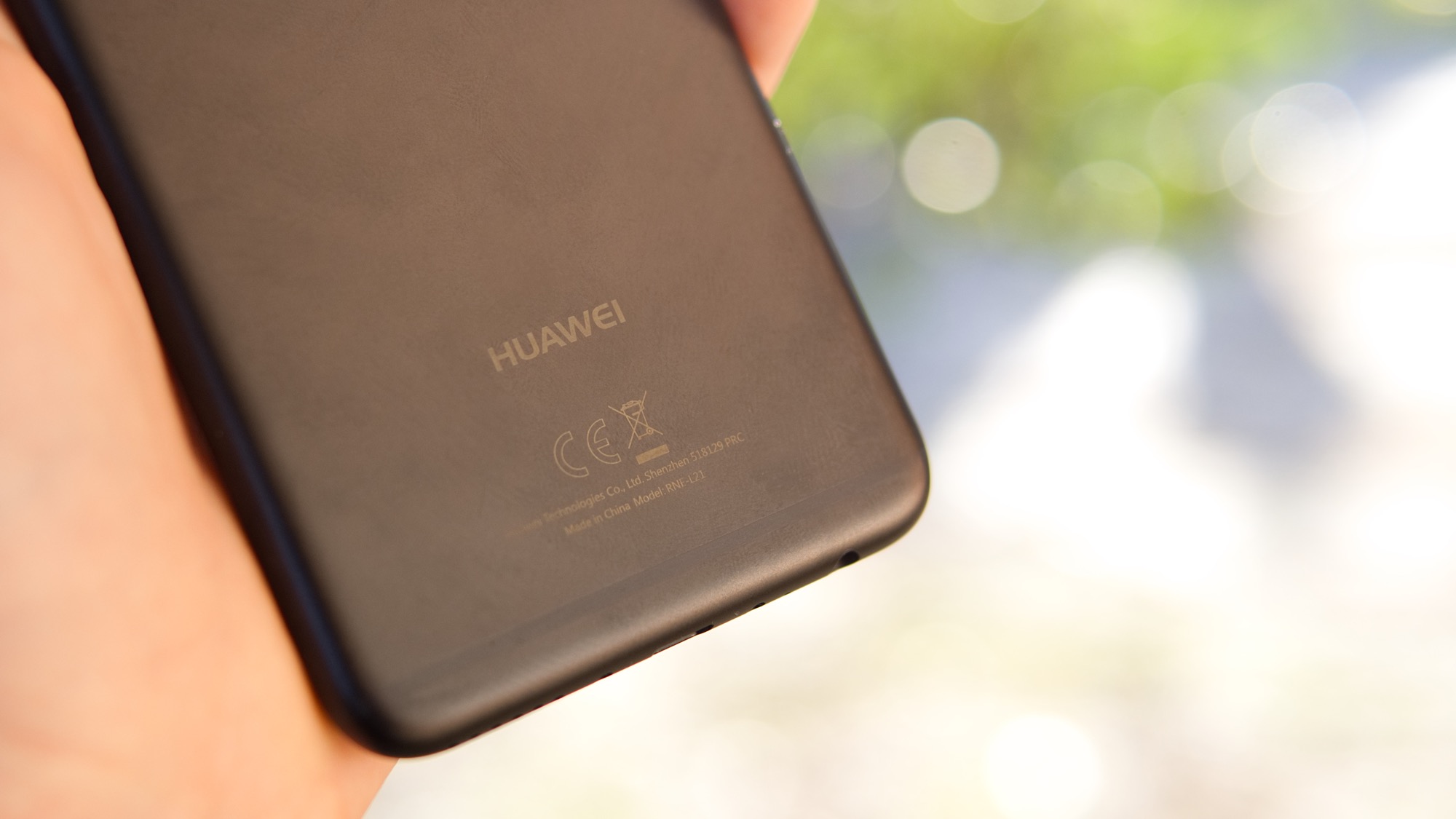 Under skyddsglaset finns i alla fall en avlång LCD-skärm. Den har ett 18:9-format som gör den unik i sin prisklass. Avlånga skärmar har blivit populära i dyra smartphones men har nu alltså letat sig ner i lägre prisklasser. Den avlånga skärmen gör att Huawei inte får plats med en fingeravtrycksläsare på framsidan. Ovanför skärmen finns i alla fall två frontmonterad kameror och en hörlur.