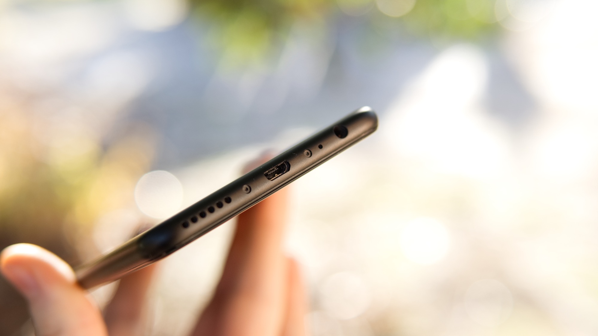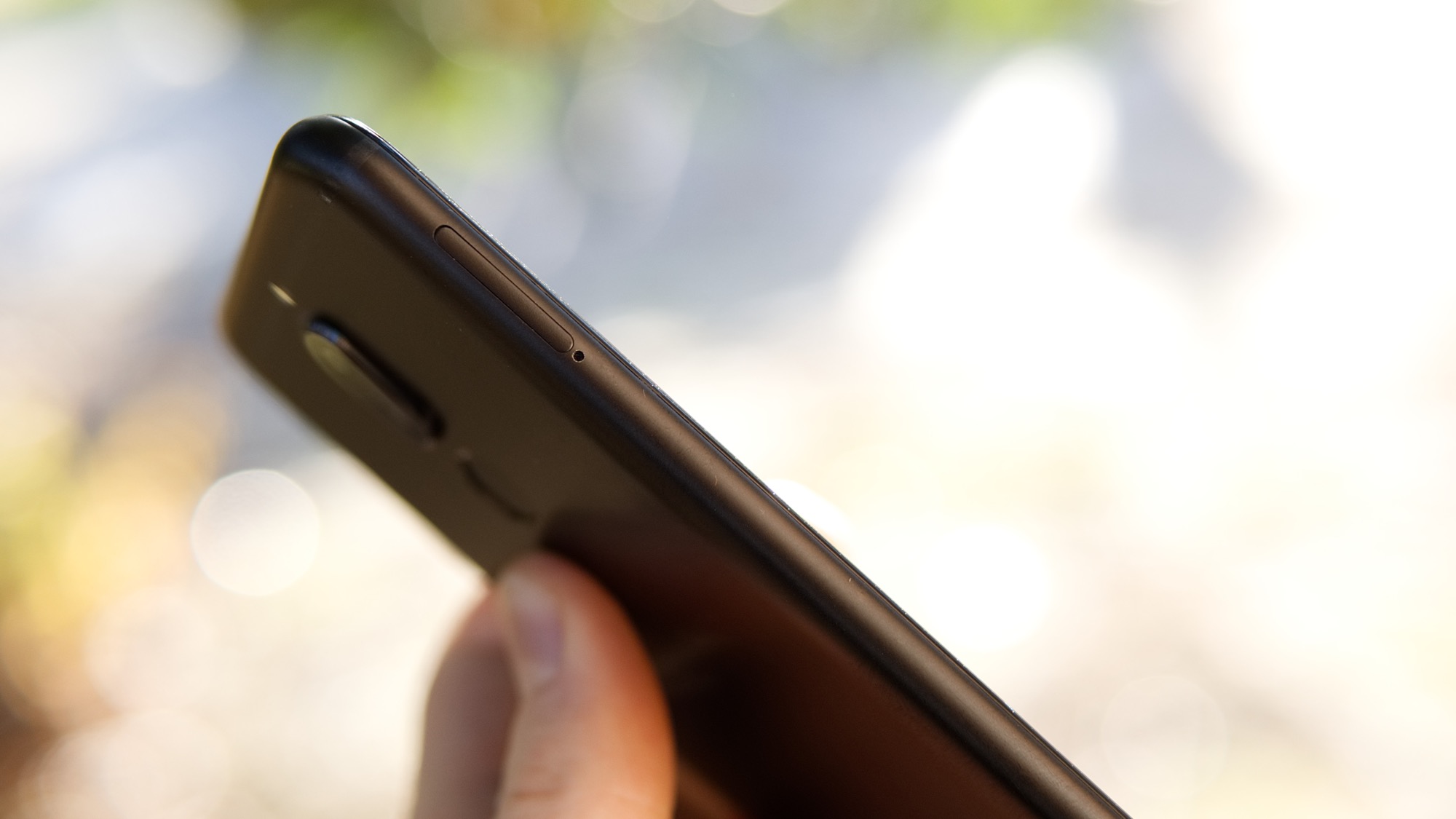 Metallen fortsätter från baksidan till vänster och höger sida av mobilen. På höger sida finns en på/av-knapp och volymknappar som ger dra fysisk återkoppling och på vänster sida finns en kortläsare som har plats för antingen två nanoSIM-kort eller ett nanoSIM-kort och ett microSD-kort. På ovansidan finns en sekundär mikrofon men ingen IR-sändare som på Mate 10 Pro. På undersidan finns slutligen en hörlursport, en mikrofon, en högtalare och en microUSB-port som har stöd för USB On-The-Go. Den gamla porten visar tydligt att Mate 10 Lite är en delvis föråldrad smartphone. Vi hade inte förväntat oss att få se en smartphone under slutet av 2017 som inte har den moderna USB Typ-C-porten.