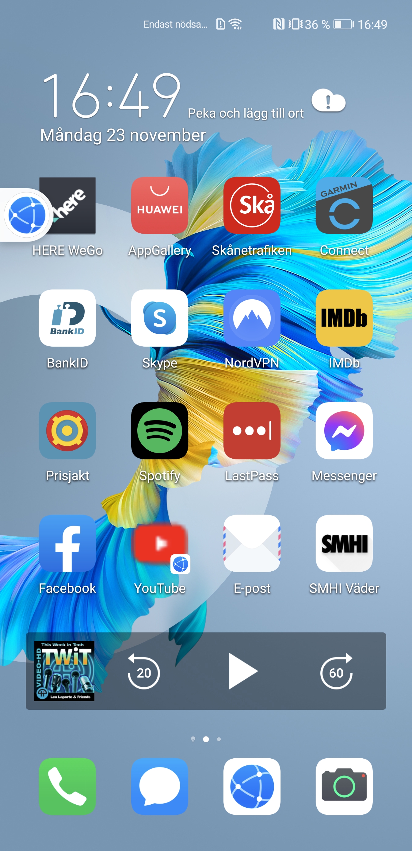 EMUI 11 är ny för Mate 40 Pro. Den nya mjukvaran baseras fortfarande på Android 10 men förbättrar mjukvaran med nya funktioner. Det inkluderar ett förnyat fokus på multitasking. Sveper vi in från sidan av skärmen och håller kvar fingret en sekund, öppnas en vy över snabbgenvägar för appar. Härifrån kan vi öppna appar i flytande fönster på skärmen. Det är funktionalitet som fanns i EMUI 10.1 men som nu har förbättrats med ett bubbel-gränssnitt som påminner om de nya konversationsbubblorna i Android 11. När vi minimerar en flytande app visas den som en flytande ikon på skärmen. Det gör det enkelt att snabbt öppna appen med ett klick. Det är perfekt om vi till exempel vill ha snabb tillgång till en hemsida, bilder eller liknande medan vi gör research eller skriver i ett dokument.