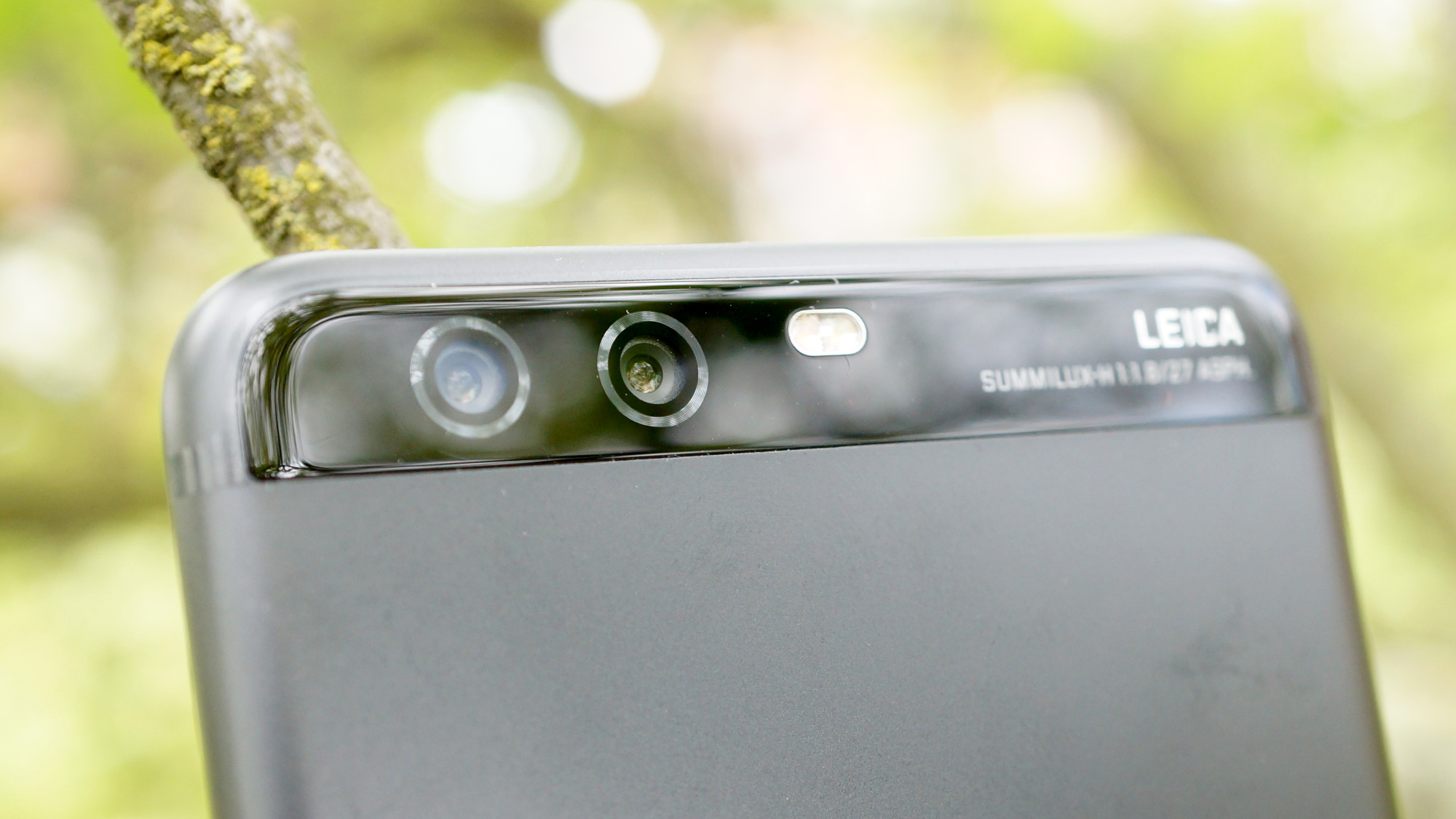 Längst upp på telefonens baksida sitter dubbla Leica-märkat kameror, dubbla LED-lampor och ett laserbaserat autofokussystem. Kamerorna är skyddade av glas och är helt platta längst baksidan av telefonen. Kamerorna sticker alltså inte ut och riskerar att bli repade på samma sätt som kamerorna på Mate 9 Pro gör.