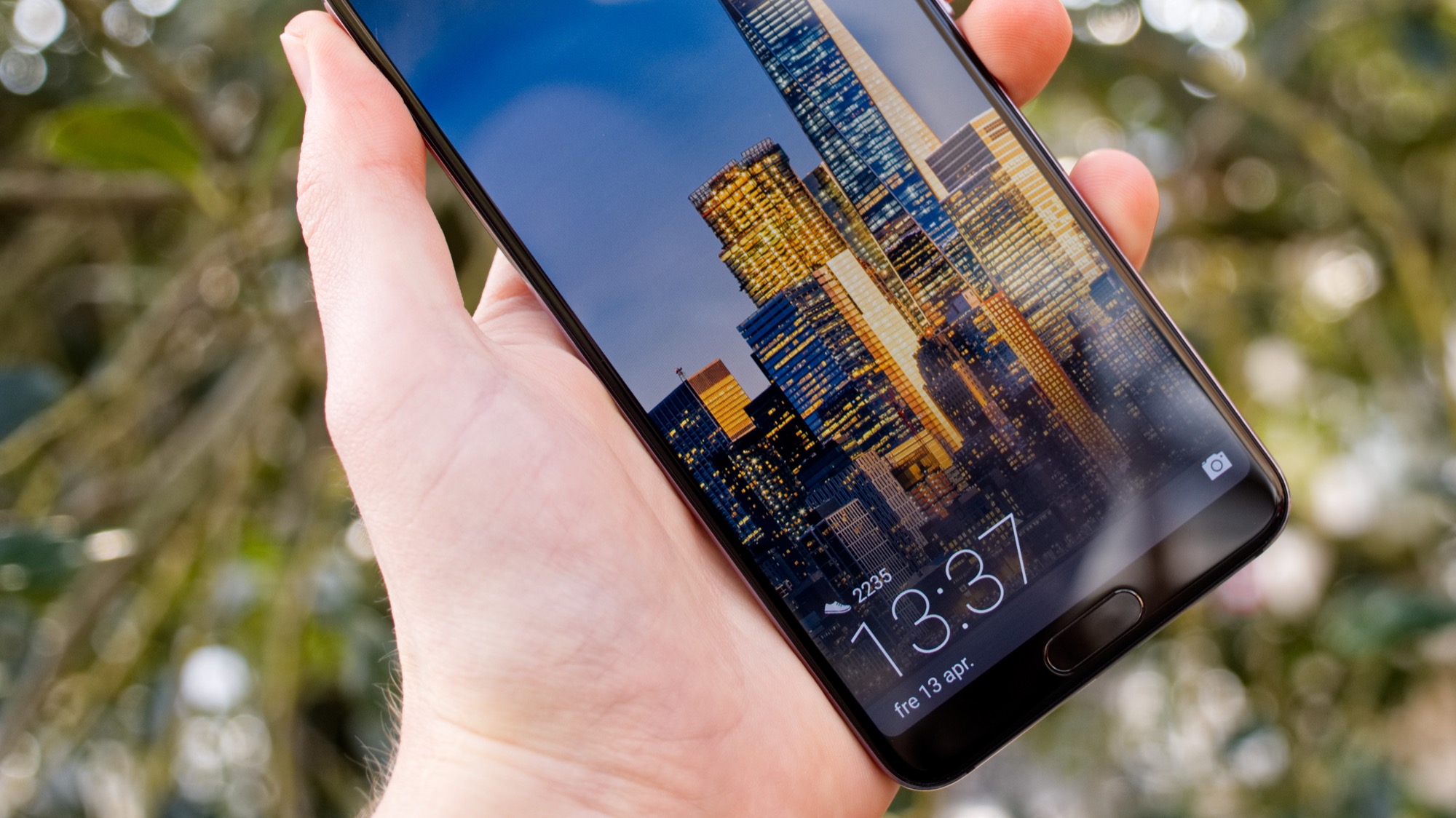 På framsidan finns en stor skärm som skyddas av ett Corning Gorilla Galss 5-glas. Till skillnad från P10-serien från förra året är skyddsglaset på P20 Pro skyddat av ett oleofobiskt skyddslager. Det betyder att glaset är smuts- och fettavstötande. Oleofobiska skyddslager har varit en standardfunktion i alla smartphones som har lanserats sedan det senaste decennieskiftet men eftersom föregångaren saknade det är det ändå värt att nämna att det finns på P20 Pro.