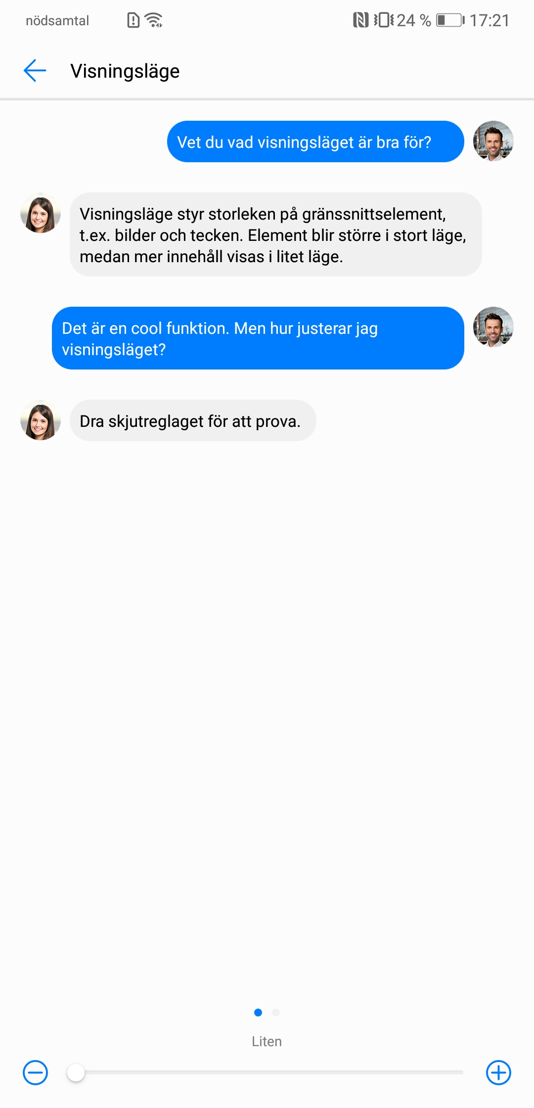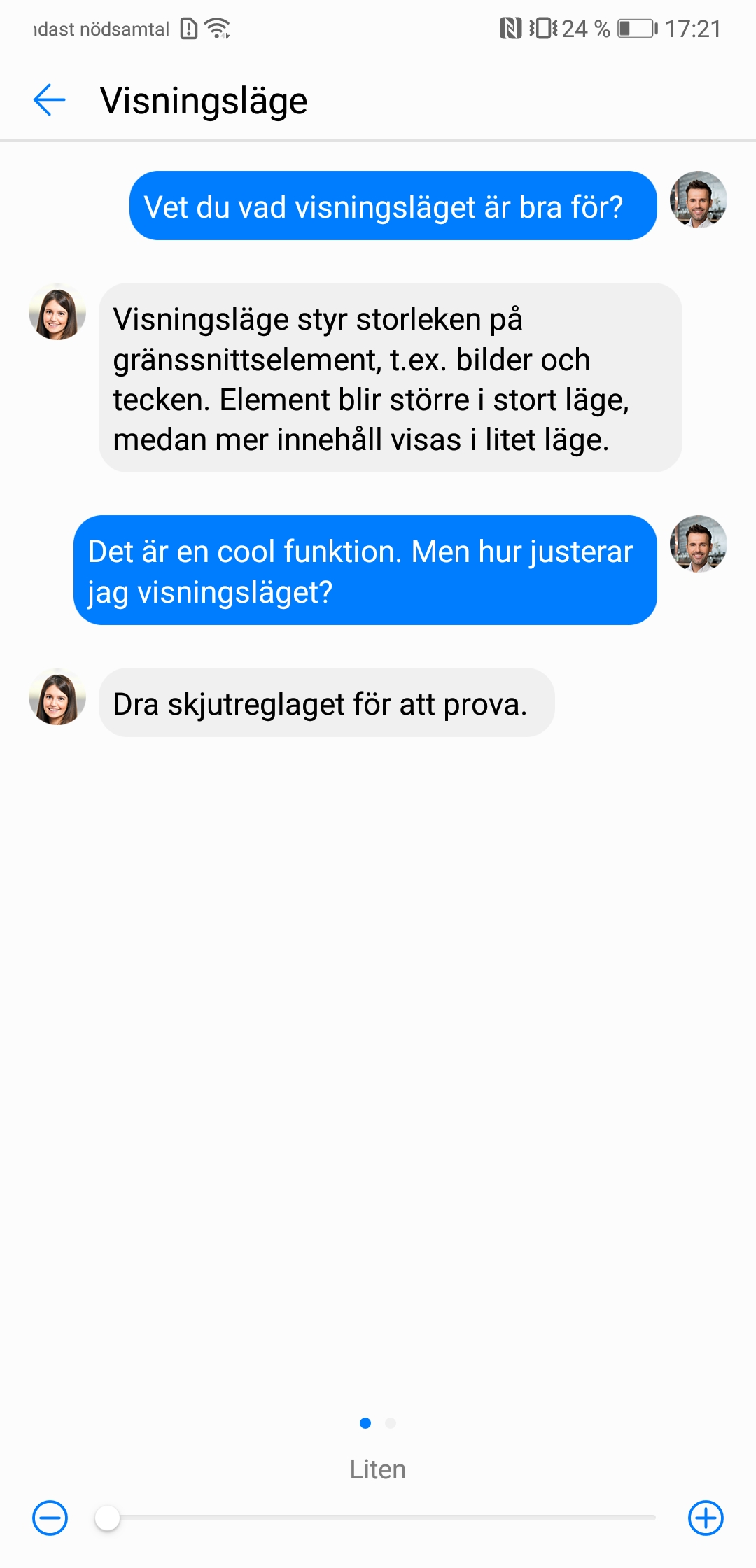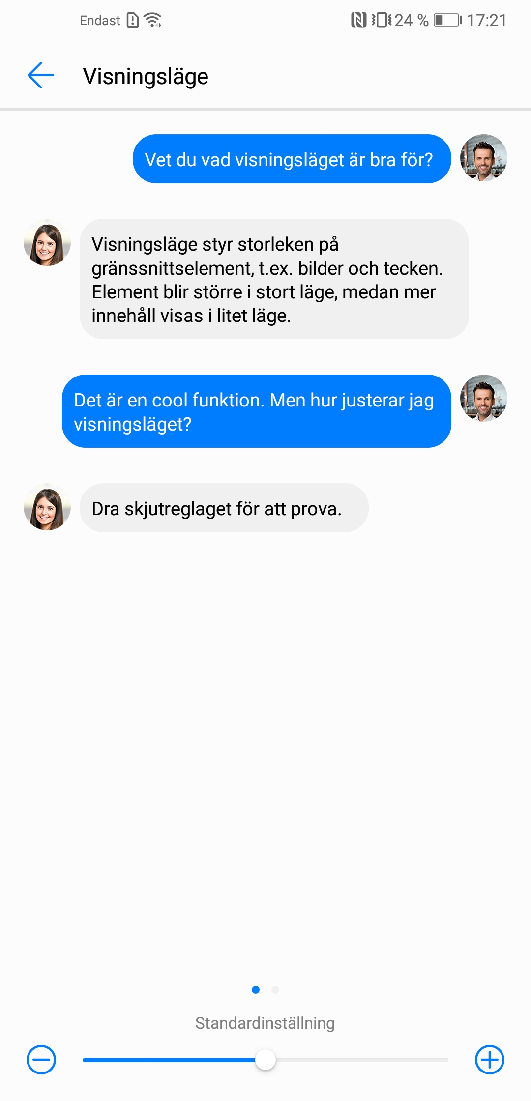 En lösning på problemet är att öka textstorleken men även då är skalningsstegen alldeles för stora för att vara praktiska. Även om användare skulle nöja sig med Huaweis underliga skalningsalternativ fungerar det ändå inte som det ska för notiser och snabbgenvägar som vägrar skala med resten av operativsystemet.
