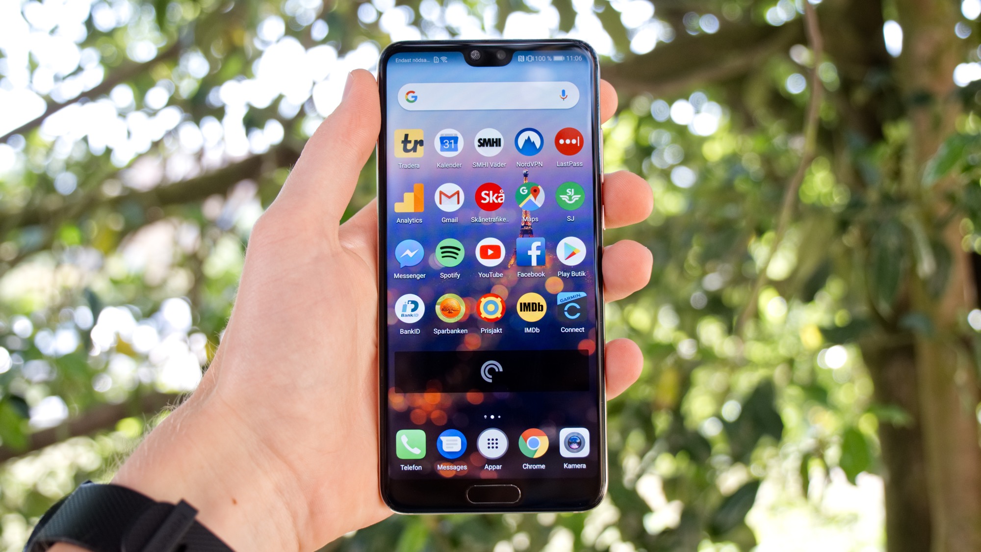 Läs mer om hårdvaranHuawei P20 är det mindre syskonet i Huaweis nya flaggskeppsserie. Det faktumet märks tydligt så fort vi plockar upp den i handen. Telefonens mindre skärm gör hela telefonen betydligt mindre och lättare att hålla. Stora skärmar kan ha fördelar men det är svårt att säga annat än att Huawei P20 är en betydligt smidigare smartphone än sitt större syskon, P20 Pro.