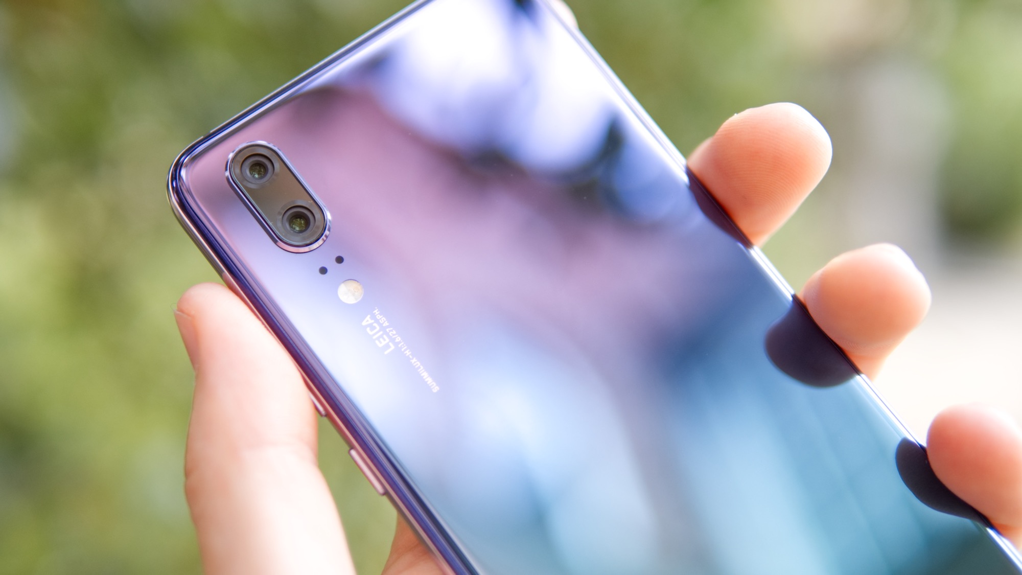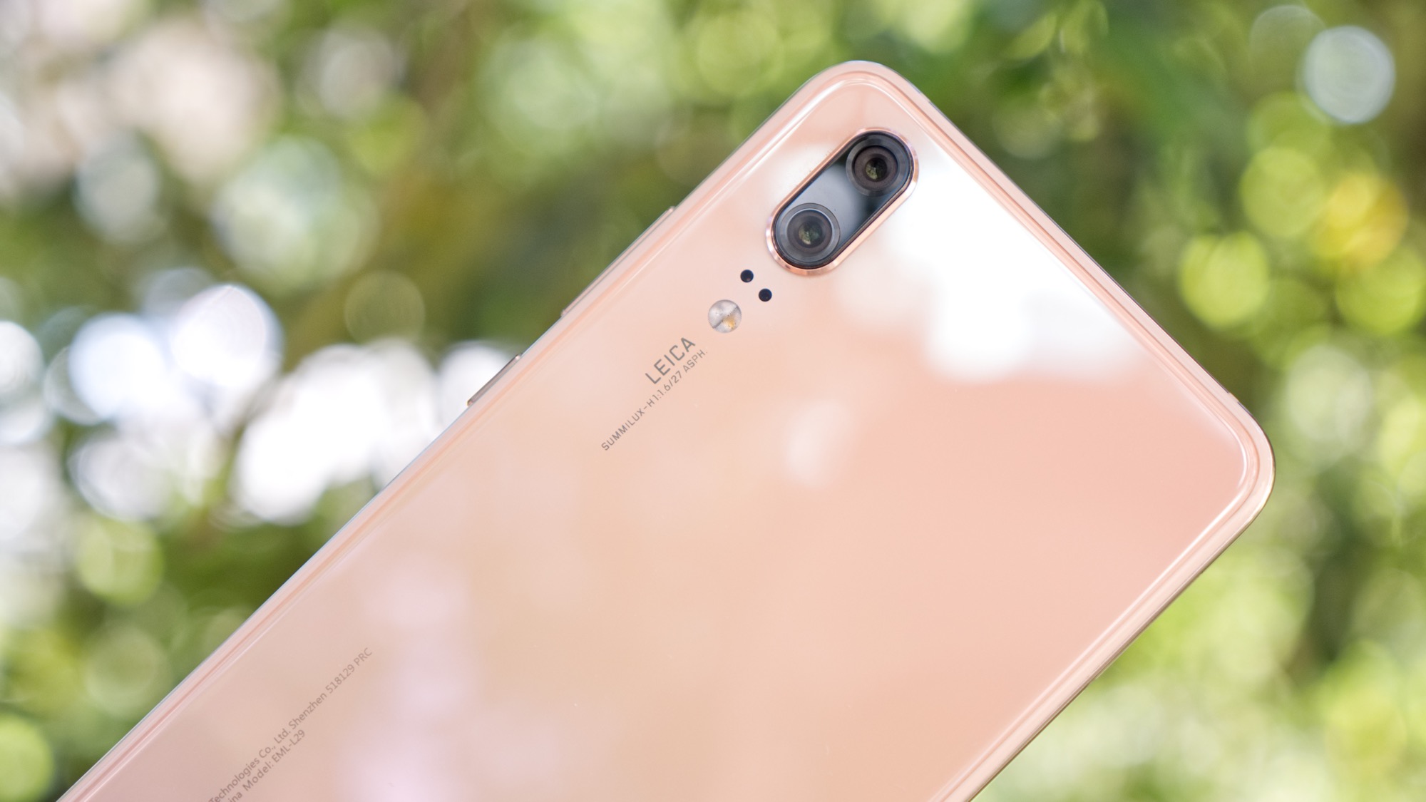 I det övre vänstra hörnet av baksidan sitter en kameramodul som sticker ut cirka en millimeter från baksidan. Kameramodulen består av två kameror. Detta är den största synliga skillnaden, utöver telefonens storlek, som skiljer P20 från P20 Pro. P20 Pro har nämligen totalt tre kameror på sin baksida. De två kamerorna på P20 är i alla fall okcås Lecia-märkta och assisteras fortfarande av dubbla LED-lampor.