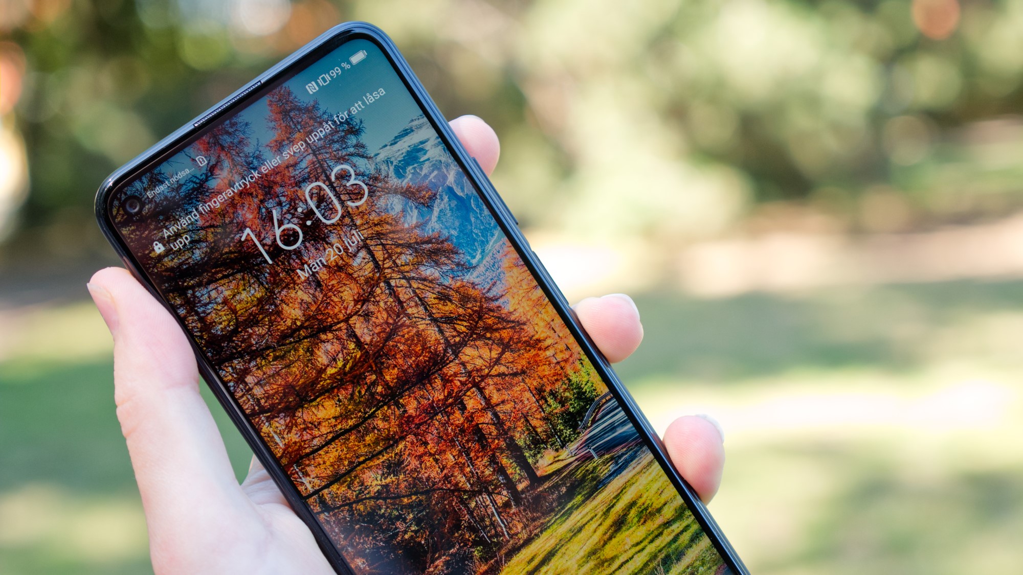 Huawei P40 Lite 5G har en ny 6,5 tum LCD-skärm med en upplösning på 1 080 x 2 400. Skärmen är alltså lite större än de annars mycket liknande skärmarna som Huawei använde i förra årets mellanklassmodeller. Utöver storleken erbjuder den nya skärmen också högre ljusstyrka, som nu når respektabelt höga 522 nits. Likt föregångarna har den nya skärmen fortfarande en ojämn bakgrundsbelysning kring selfiekameran och en färgåtergivning som inte är mycket bättre än okej. Vitbalansreglaget gör att vi kan bli av med den vanligtvis kallblåa vitbalansen. Det är dock en justering som vi önskar inte skulle behövas. På det stora hela är skärmen helt okej men även för sin klass har Huawei utrymme för förbättring.