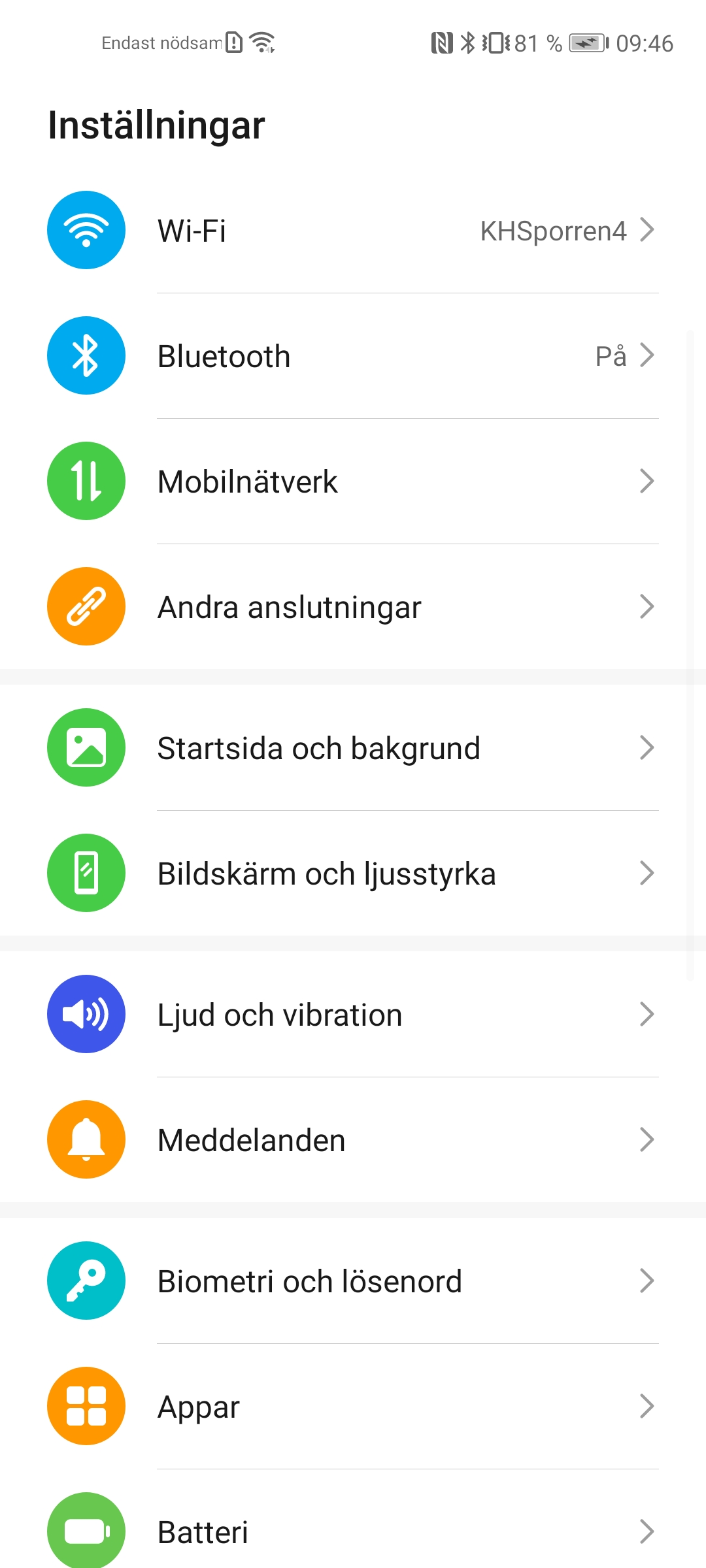 Huawei P40 Lite 5G lanseras med Android 10 och EMUI 10.1. Det överliggande gränssnittet från Huawei har förändrats ganska lite men ser möjligen ut att bjuda på större nyheter än det gör, tack vare en ny design för inställningarna. Nu klär stora och färgglada ikoner hela inställningsappen. Det gör det enklare att snabbt hitta rätt inställning, men det kan knappast beskrivas som en större nyhet.