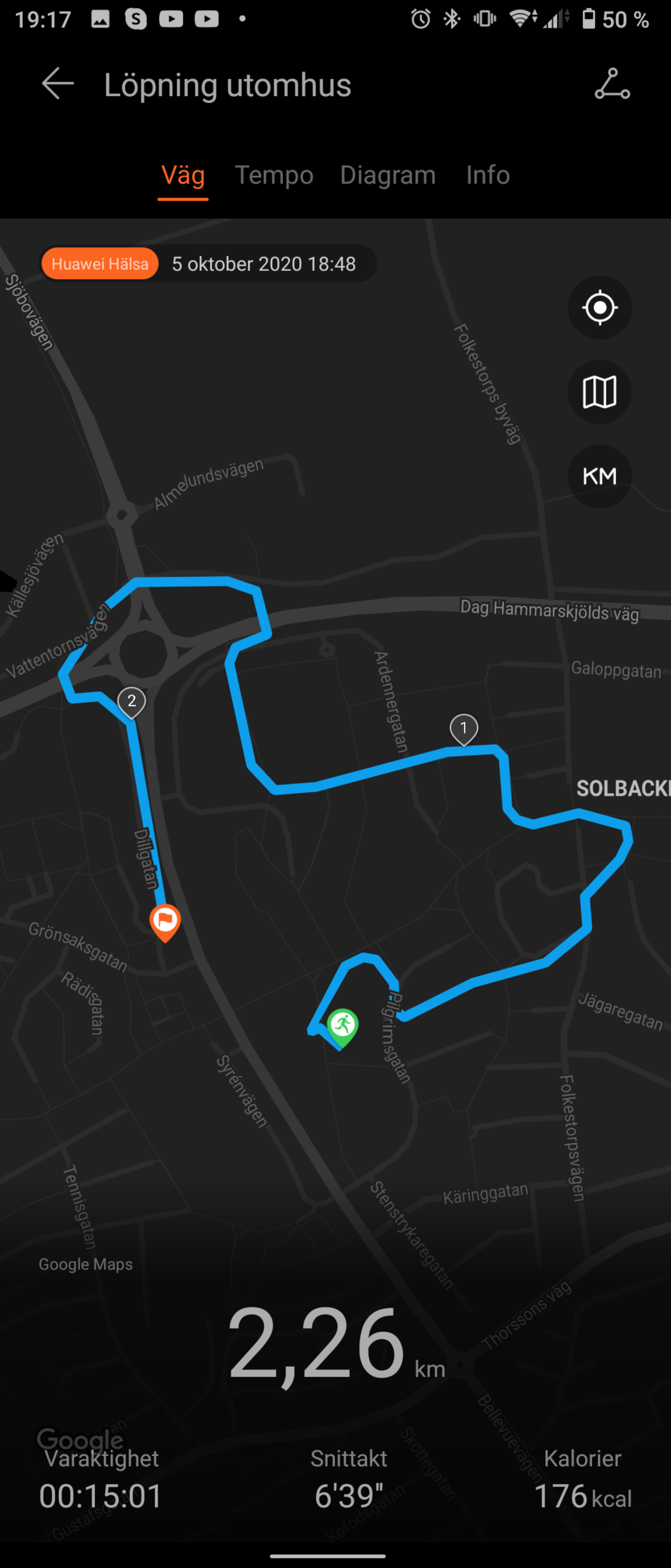 Något som är lite tråkigt är att den snålar på att registrera när vi rör oss med så kallad moderat eller hög intensitet. Här får vi under testet inga poäng, vare sig när vi tränar eller bara går ovanligt mycket. Huawei försöker också registrera träningspass automatiskt efter en viss tids aktivitet. Tyvärr varierar det hur snabbt den väljer att känna av exempelvis en promenad och då har ofta cirka tio minuter försvunnit från aktiviteten. Klockan frågar i alla fall om vi vill registrera en promenad som träning och utnyttjar därefter GPS för att mäta aktiviteten mer exakt. Den som faktiskt vill följa ett pass bör helt enkelt aktivera det i förhand.