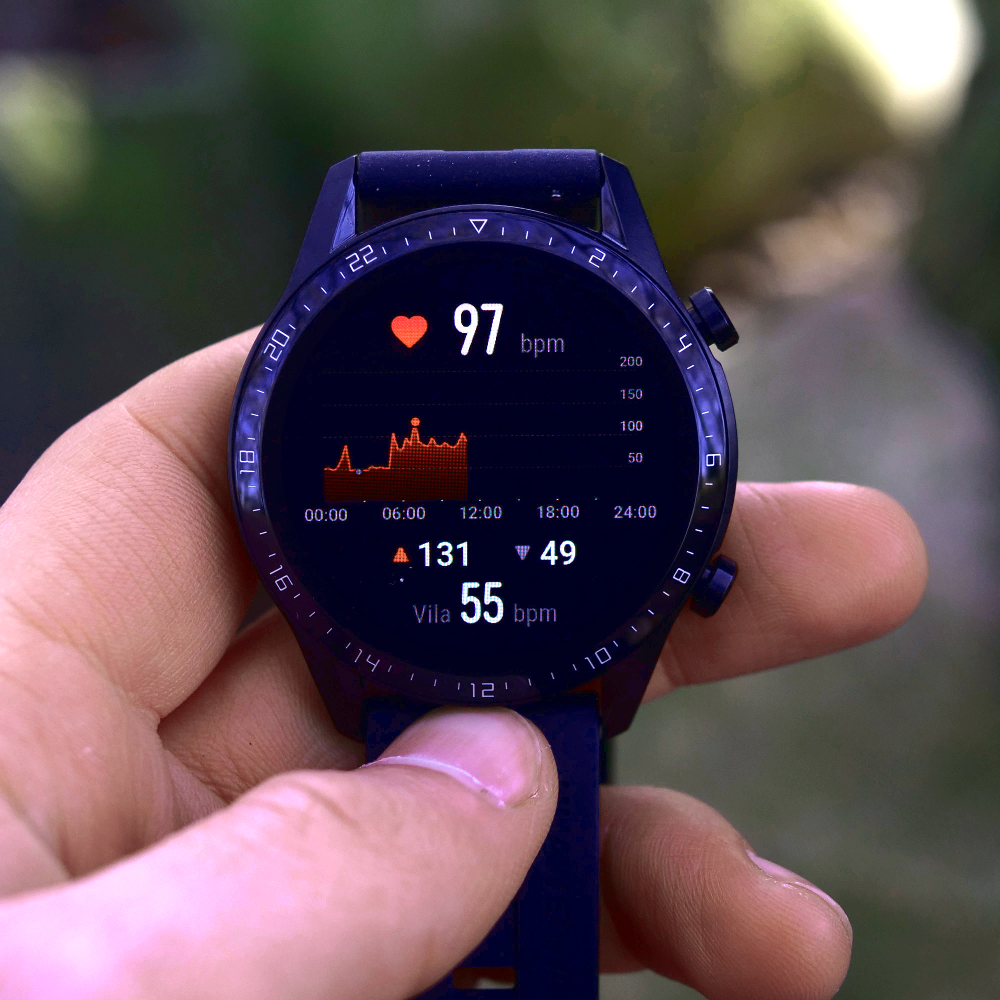Som hälsotracker är Huawei Watch GT 2 aktiv dygnet runt genom att mäta pulsvärden, steg och rörelser. Just pulsmätning är en sak som armbandsur ofta har svårt att göra med precision, då det är så mycket som kan påverka den optiska sensorn. I Watch GT 2s fall ser vi, precis som under träningspass, att klockan har svårt att ge stabila värden. Ibland är pulsmätaren inom en godkänd felmarginal och ibland är den runt tio slag per minut för mycket eller lite. Detta gör den opålitlig och svår att rekommendera för seriösa fitness-entusiaster. Klockan försöker också mäta stressvärden, vars exakthet är svåra att validera. Det vi kan säga är att klockan inte utnyttjar stressvärdet till något annat än att visa data.