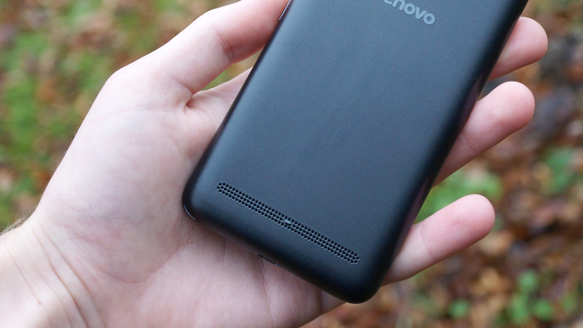Längst ner på baksidan finns ett galler till en högtalare. Trots att gallret sträcker sig över hela telefonens bredd sitter det bara en högtalare på baksidans högra sida. Till skillnad från många andra Lenovo-telefoner finns det ingen högtalare på telefonens framsida.